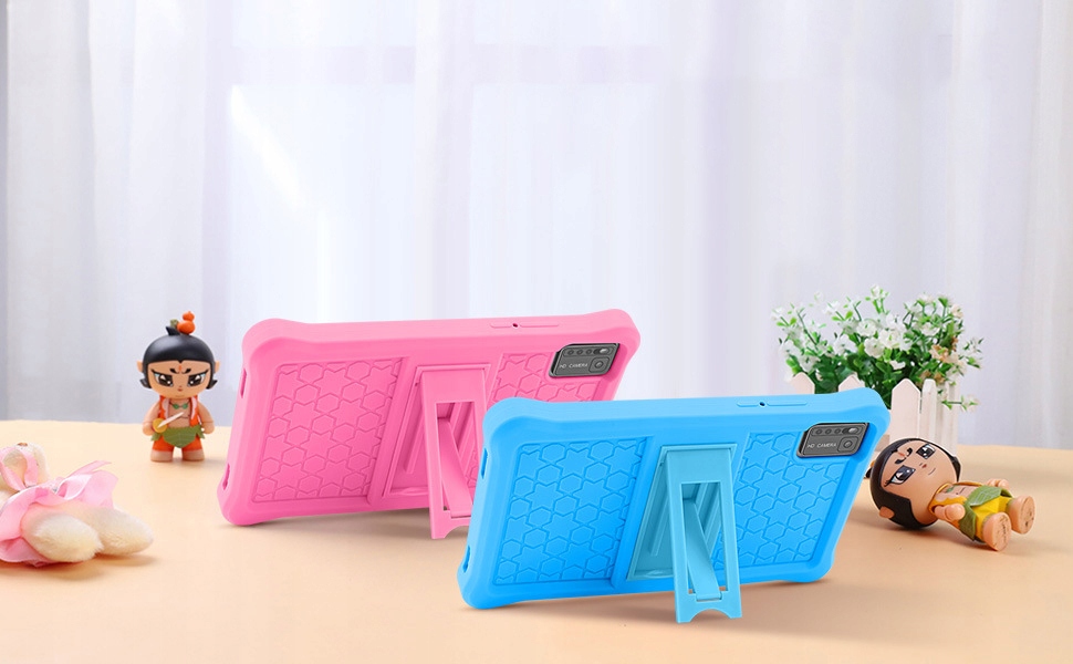 - Чехол с защитой от детей изготовлен из легкого, прочного, безопасного для детей и ударопрочного мягкого силикона, который защищает планшет от царапин, грязи и ударов, падений, пыли и т. д. Мягкий материал обеспечивает мягкое и гладкое прикосновение. Чехол имеет функцию поддержки, поэтому детям не придется постоянно держать планшет во время обучения, просмотра и игры.