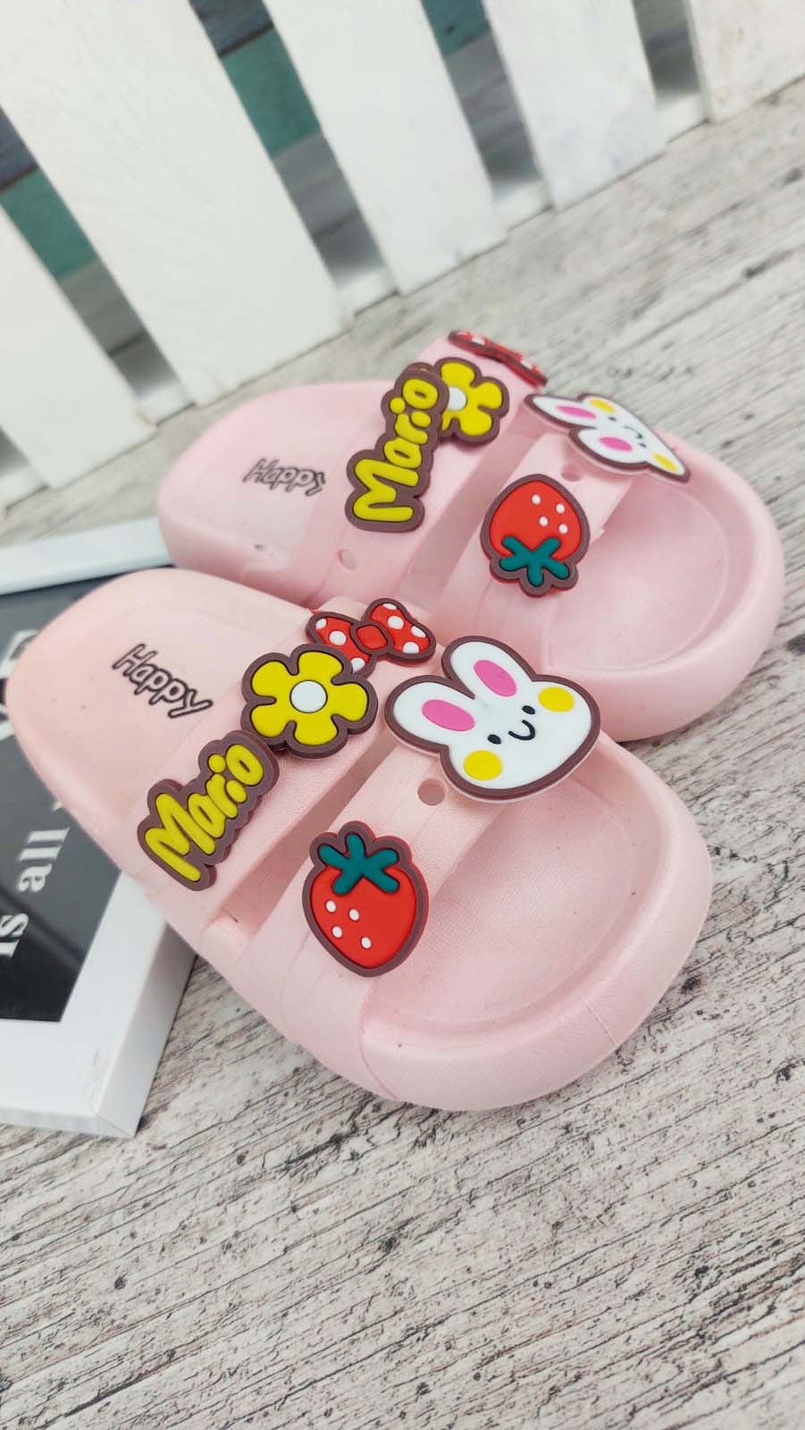 Симпатичный и удобные шлепанцы со сладкими украшениями, изготовленным из легкого пенопластового материала. Декоративные элементы: кролик, лук, цветок, клубника, надпись Марио. Дополнительным преимуществом украшений является возможность удалить их или перегружать их в другое место. Легко чистить. Идеально подходит для бассейна, пляжа, в душе, а также может заменить домашние тапочки.