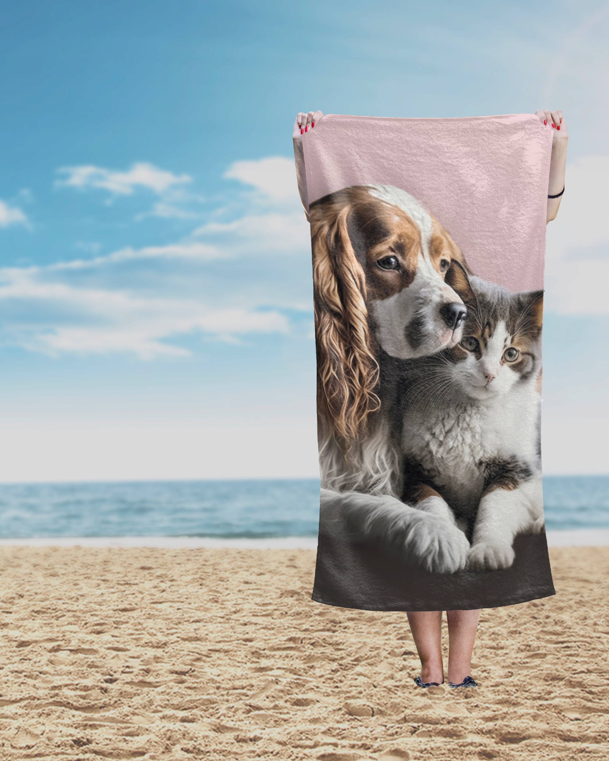 Детское пляжное полотенце 70 см х 140 см собаки с кошкой