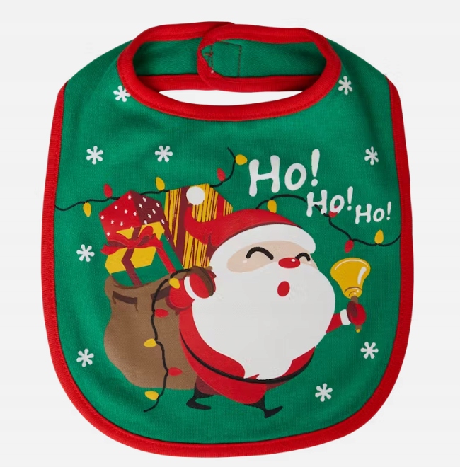 Хлопковый рождественский нагрудник из впитывающего мягкого материала. Супер приятный на ощупь. Рождественские цвета создают прекрасную атмосферу. Мы гарантируем, что в нашем нагруднике каждый ребенок будет отлично выглядеть.