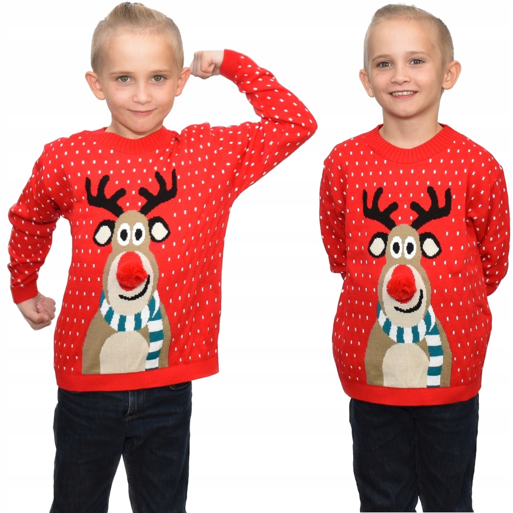 ДЕТСКИЙ РОЖДЕСТВЕНСКИЙ ДЖЕМПЕР РУДОЛЬФ НОС ОЛЕНЯ 3D ПОМПОН - РОЖДЕСТВЕНСКИЙ 11/12 ЛЕТ