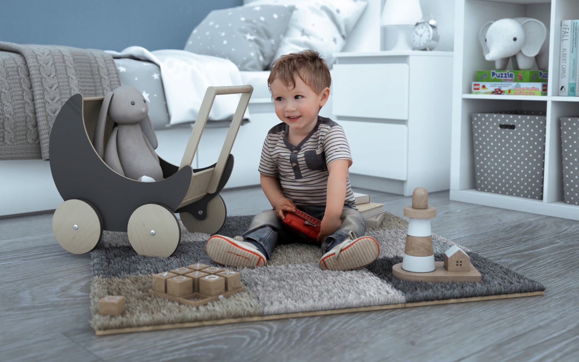 Коврик Gioco 50 очень легко чистить. Его можно чистить всухую, используя пылесос или щетку. Пена ЭВА не впитывает влагу и воду, что делает ее гигиенической альтернативой ковровому покрытию.