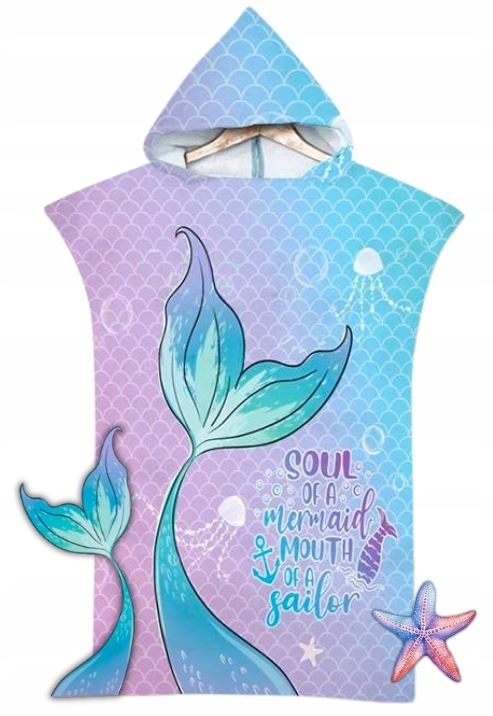 ДЕТСКОЕ ПОЛОТЕНЦЕ С КАПЮШОНОМ КУПАЛЬНОЕ ПОНЧО «РУСАЛКА»