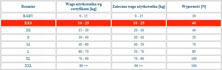 При покупке жилет всегда следует выбирать в соответствии с весом пользователя. Современный дизайн и очень широкий диапазон регулировки окружности талии делают его идеальным для всех людей определенного веса. Жилет размера XXS рекомендуется людям весом от 10 до 25 кг.