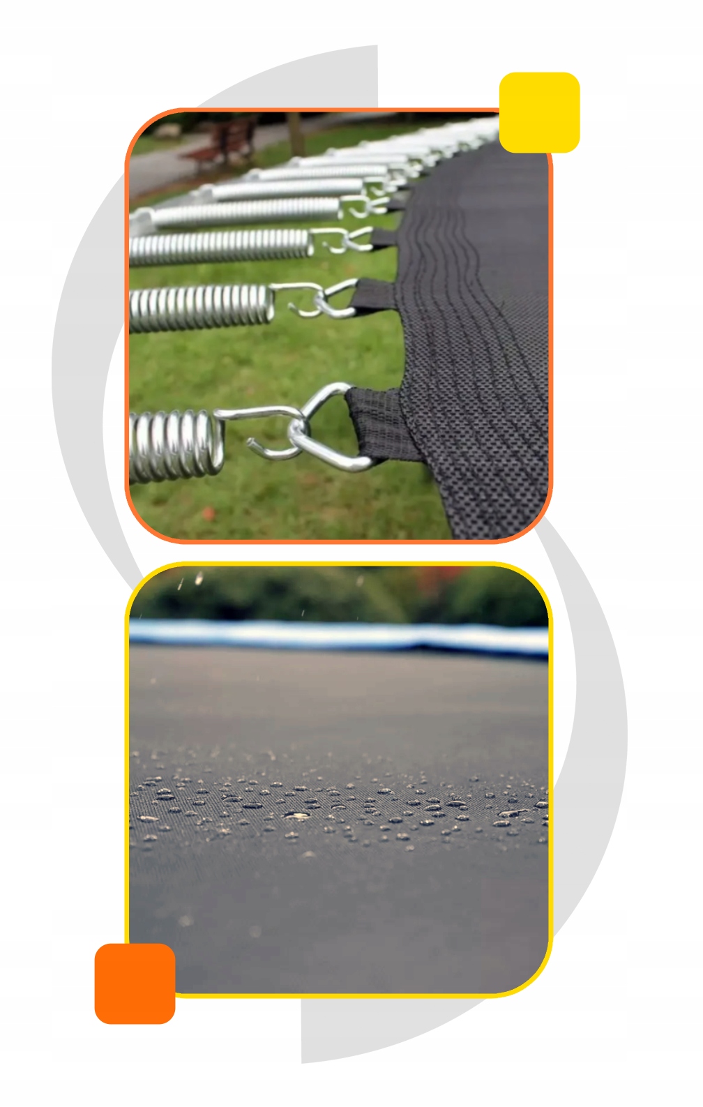 - 72 пружины, отвечающие за качество отскока и мягкое приземление. Длина пружины высотой до 138 мм, что в сочетании с прочным ковриком дает высочайшее качество.