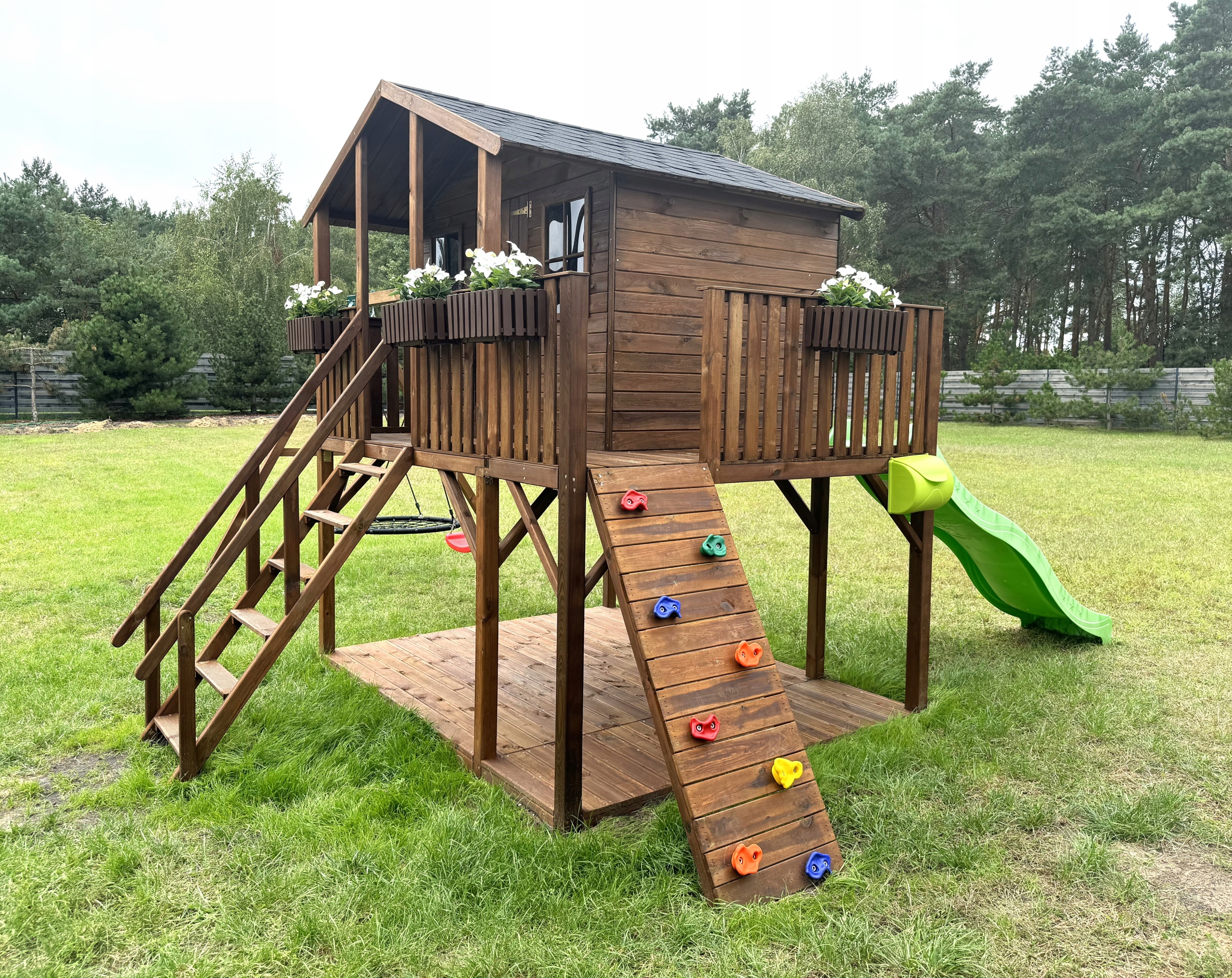 ⭐ Предложение распространяется на самый продаваемый детский домик, расширенный скалодром, качелями и аистовым гнездом ⭐