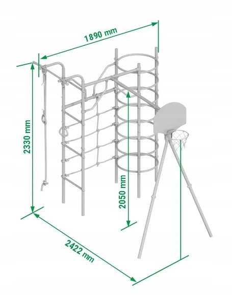 - Допустимая нагрузка : 100 кг (игровая площадка), 50 кг (подвесные аксессуары).