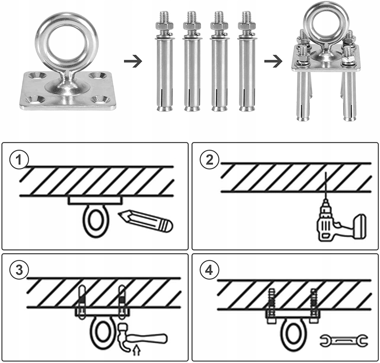 ✅【Простота установки и доставки】: 1 гамак, 1 соединительный трос, 1 соединительное кольцо, 1 удлинительный ремень, 1 пластина из нержавеющей стали, 4 расширительных винта кронштейна и простые инструкции.