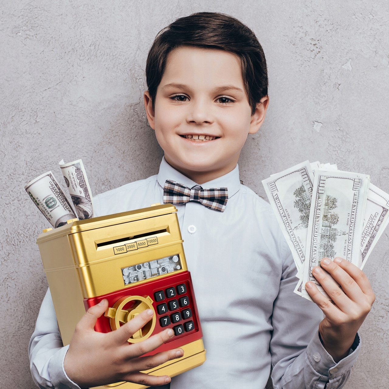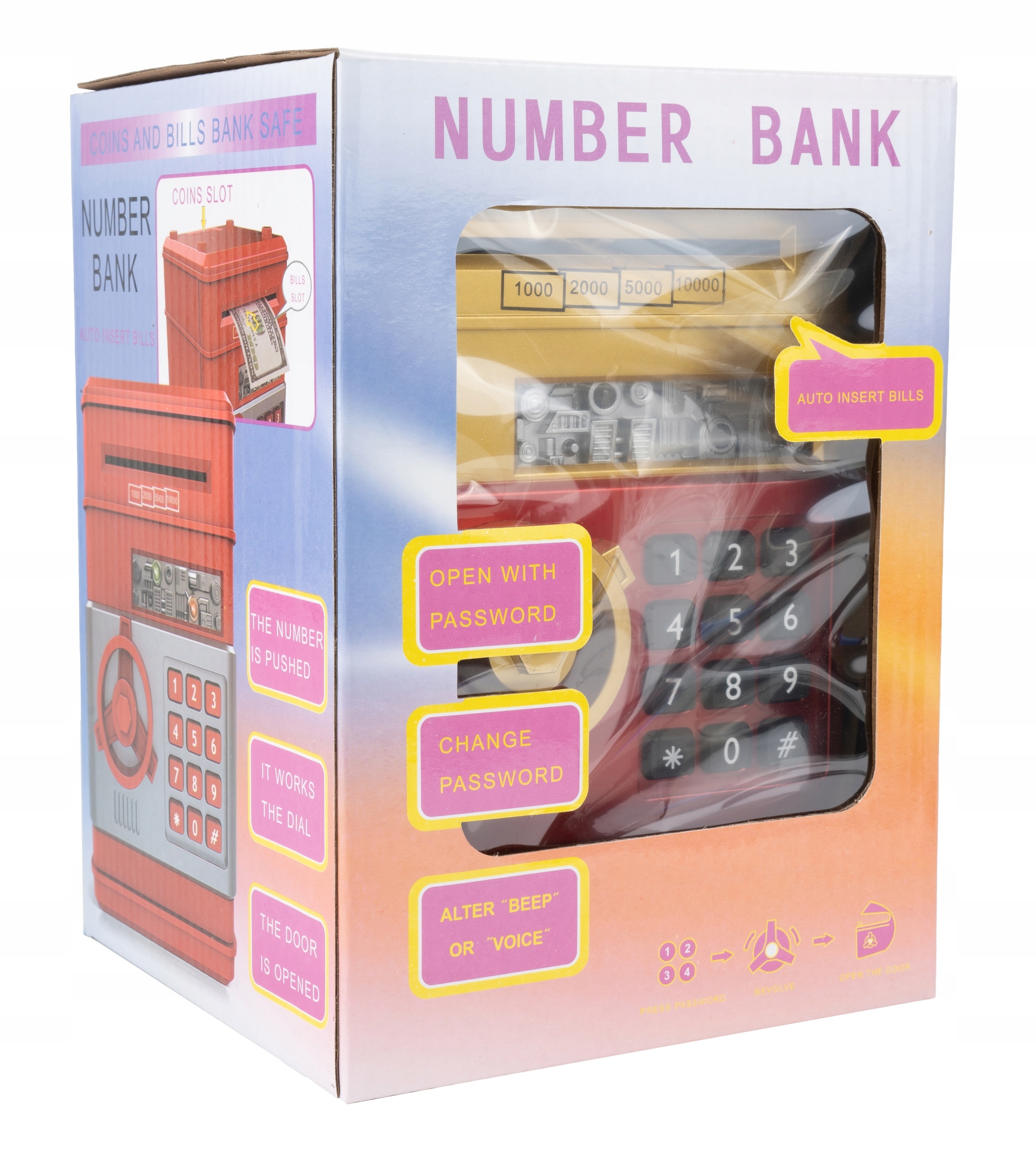 Мы предлагаем красочный поросший банк в форме сейфа с электронным кодом! Благодаря ей, ваш ребенок научится экономить и планировать расходы. Поросший банк автоматически принимает бумажные деньги и монеты. Все, что вам нужно сделать, это поставить банкноту в вход, и сейф автоматически загрузит монету!