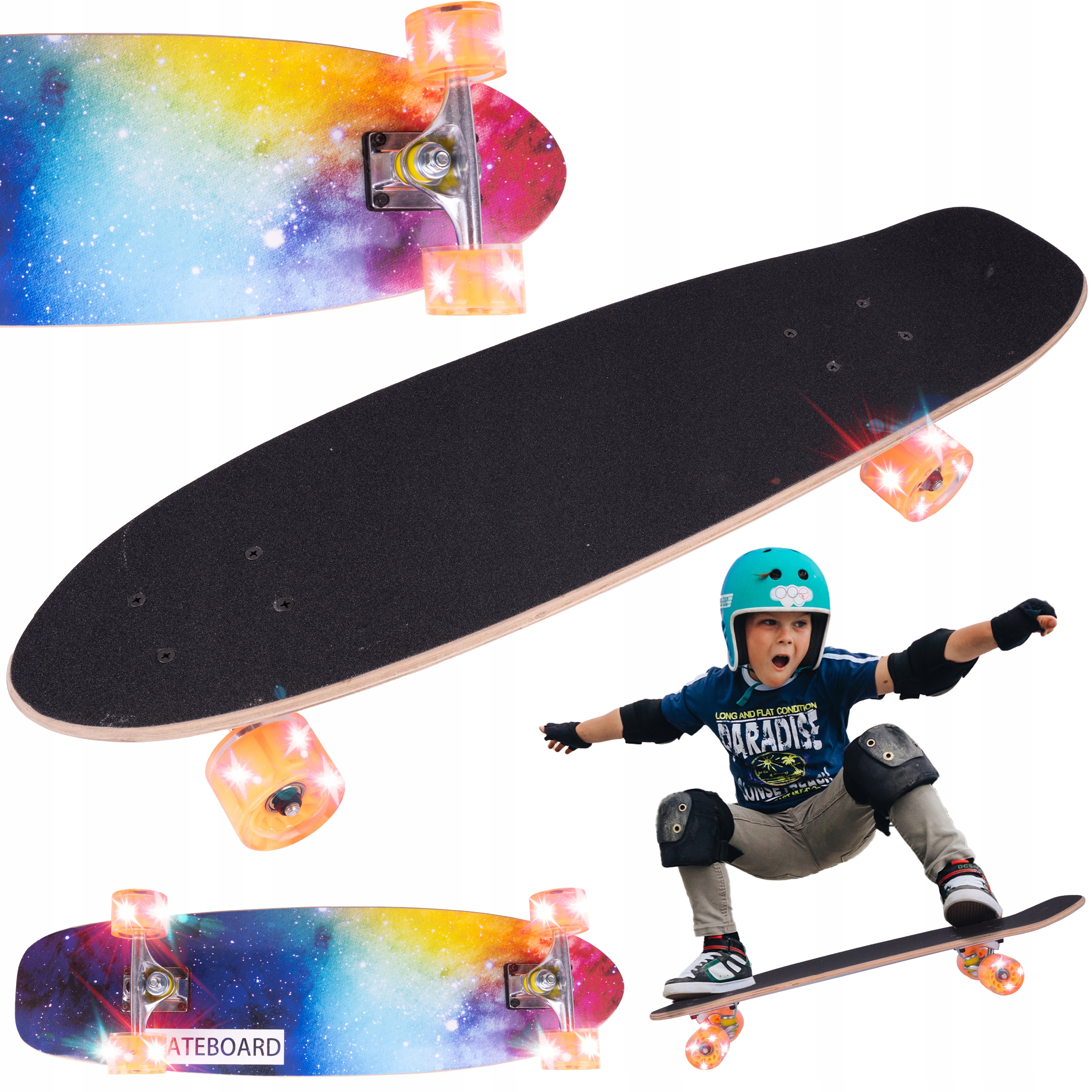 ДИТЯЧИЙ СКЕЙТБОРД FISZA, ДЕРЕВ'ЯНИЙ, КОЛЕСА, ЩО СВІТЯТЬСЯ, 6 СМ LED ABEC-7, ЦІЛЬНИЙ