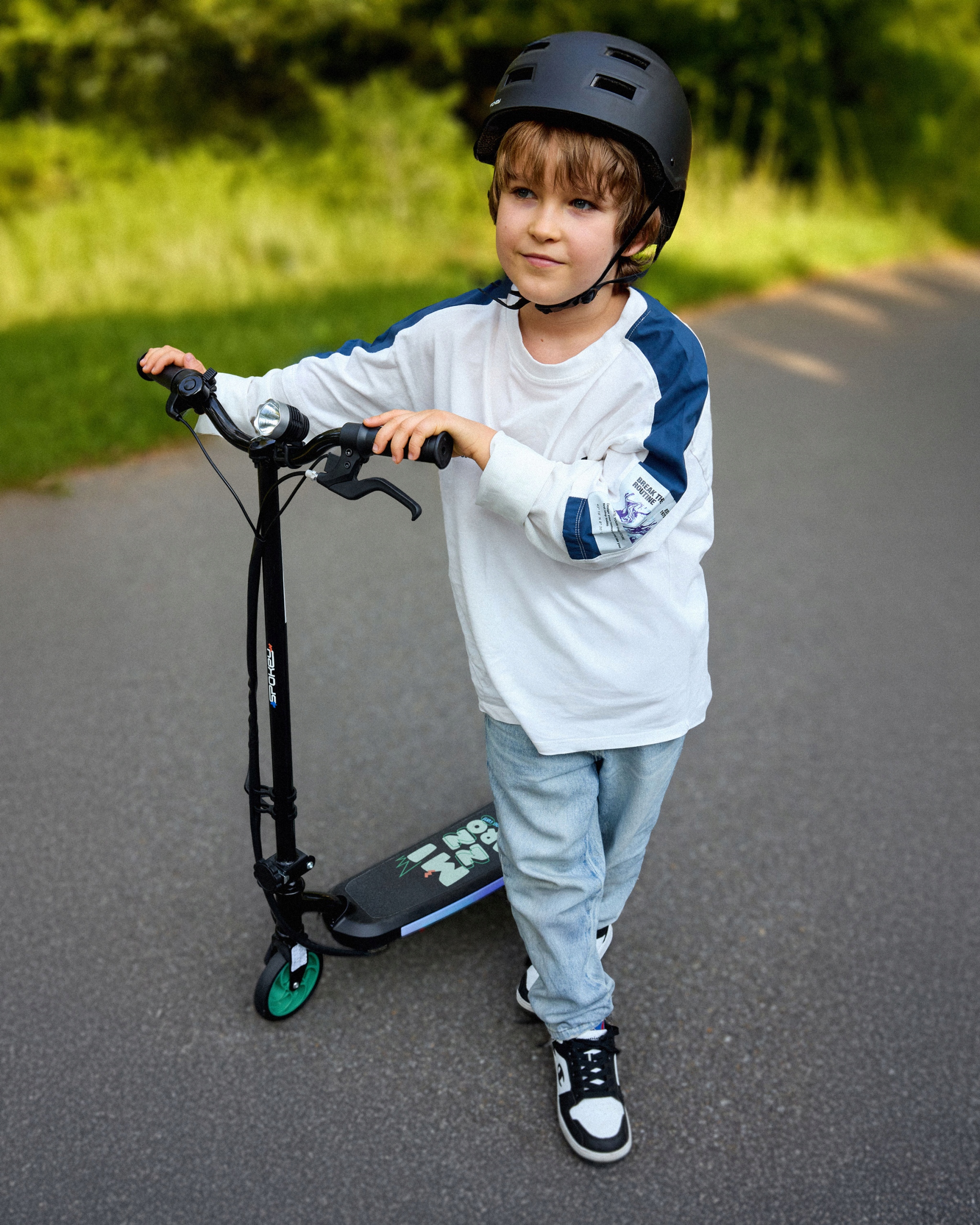 Скорость до 12 км/ч, регулируемая рычагом, и запас хода до 9 км на одном заряде - идеальный первый электросамокат для молодежи!