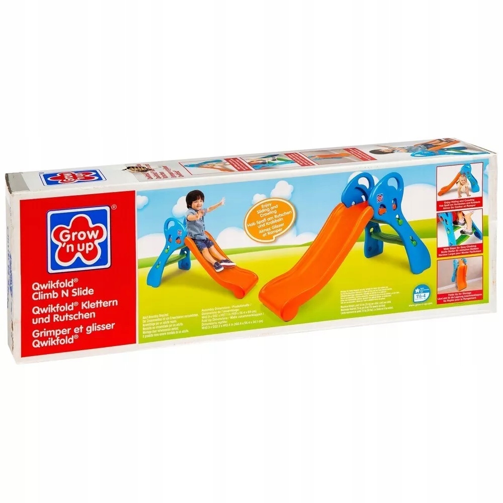 Qwikfold Climb Slide Outdoor Toy перемещает детскую площадку в сад. Этот красочный 3,5-градусный, поднимающийся внешний слайд имеет округлые углы и мягкий склон, с высокими сторонами и широкой стабильной основой для обеспечения безопасности детей во время игры. Игрушка на открытом воздухе Qwikfold Climb имеет два широких шага и легко захватывать ручки, что обеспечивает безопасное скалолазание.