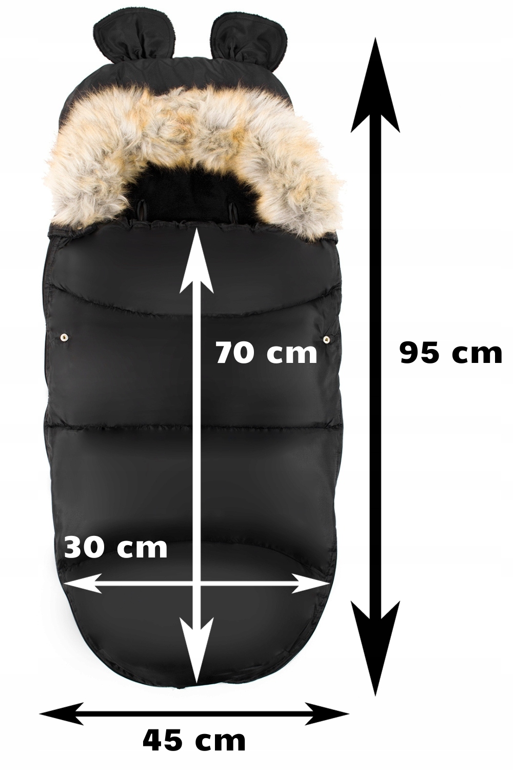 ❤️ ТЕПЛЫЙ СПАЛЬНЫЙ МЕШОК С УШАМИ НА МЕХОВОЙ ПОДКЛАДКЕ ДЛЯ КОЛЯСКИ, КОЛЯСКИ, ГОНДОЛЬНОГО СИДЕНЬЯ, ГОРКИ НА ЗИМУ, ЧЕРНЫЙ 2.5 TOG STARKY