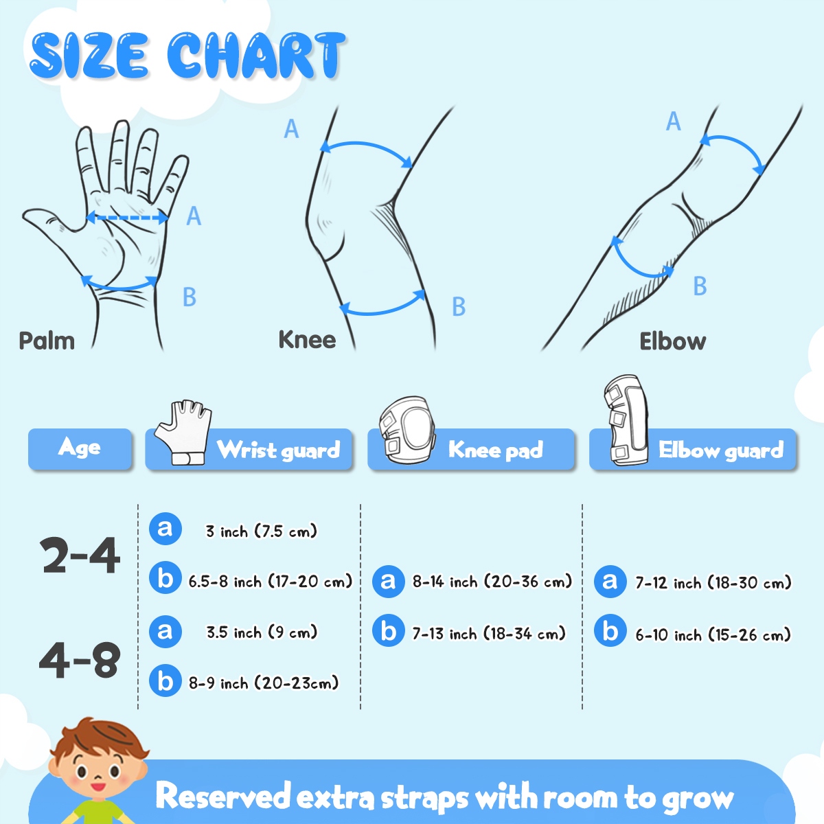 ✅- Наколенники и налокотники: один размер. Подходит для детей от 3 до 10 лет.