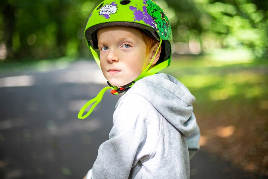 Этот шлем не только защищает головы во время вождения, но и переносит самых молодых велосипедистов в увлекательный мир героев и приключений.