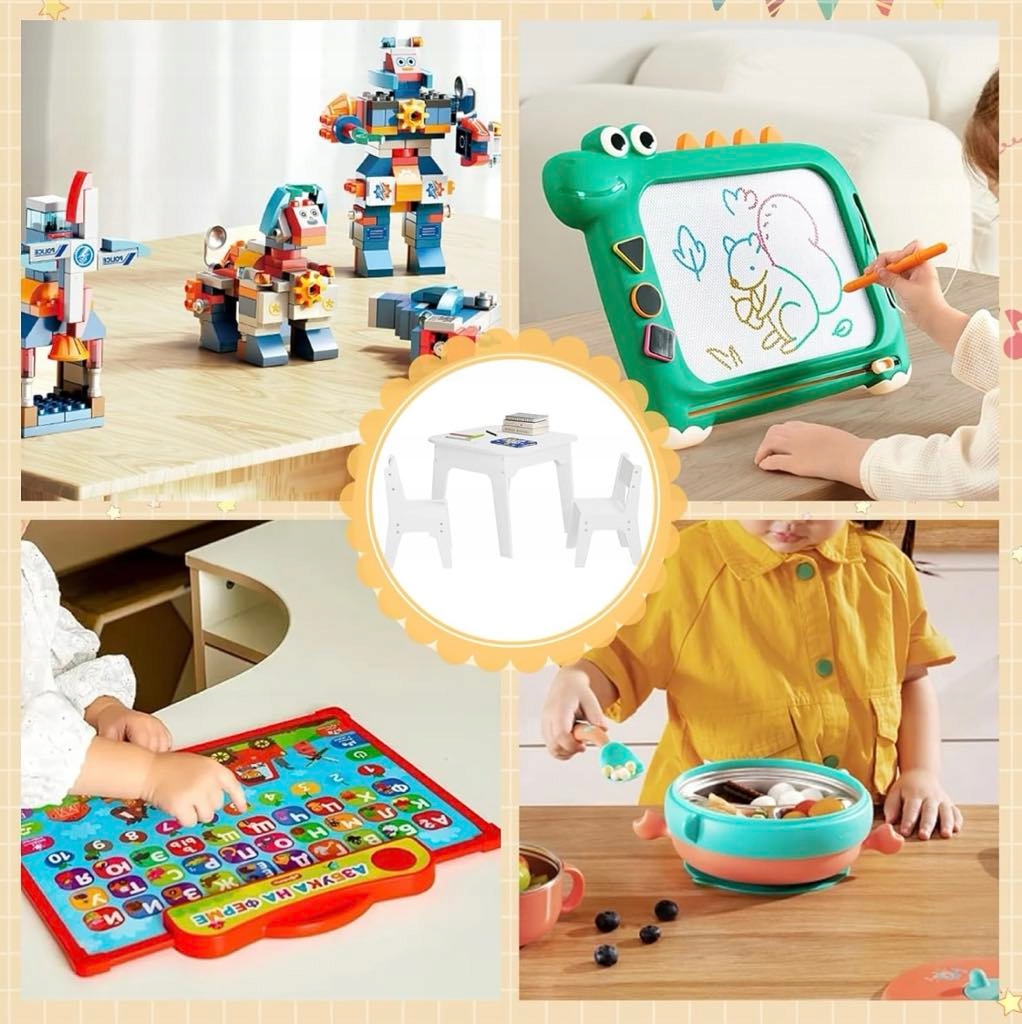 Идеальный подарок : двойная столовая вершина является многофункциональной: одна страница представляет собой табличку для писания или написания мела, чтобы освободить творчество вашего ребенка, другая сторона идеально подходит для чтения, игры и еды