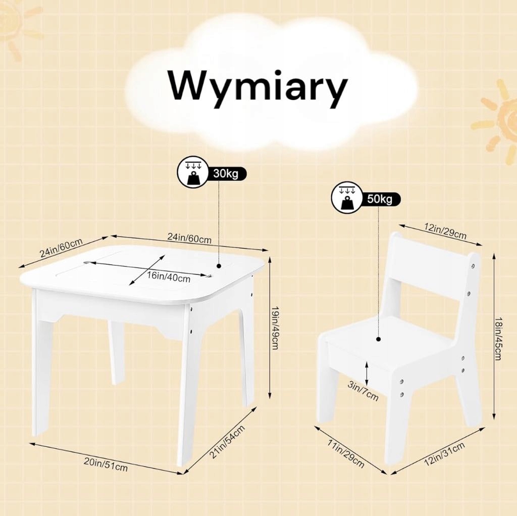 Детский стол с стульями изготовлен из MDF класса P2 и, следовательно, стабильным. Благодаря грузоподъемности 30 кг (таблица) и 50 кг (для стула) ваши дети могут безопасно использовать набор и хранить свои вещи