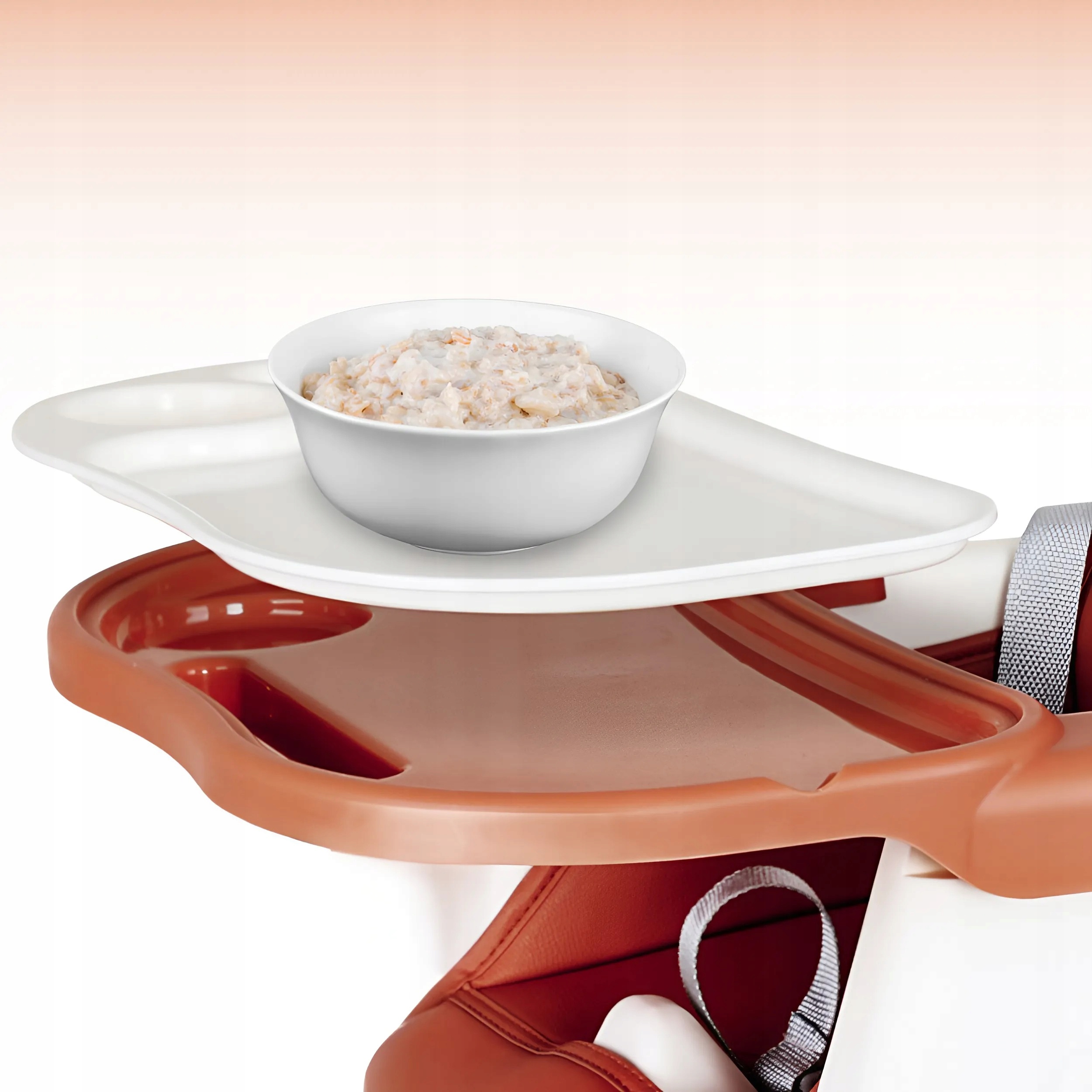 - Съемный поднос в наборе с таблицей - таблица на стуле регулируется в 3 градусах, Свобода движения и отсутствие смущения . Кроме того, верхний может быть полностью удален . Вы можете поставить поднос на таблицу , чтобы служить, например, еда . Поднос имеет полость для кружки / бутылки, легко чистить и устойчив к температуре от -20 до 100 ºC. Что это значит для тебя и твоего ребенка? Вы можете дать своему ребенку: мороженое, теплый суп и даже очень теплое молоко.