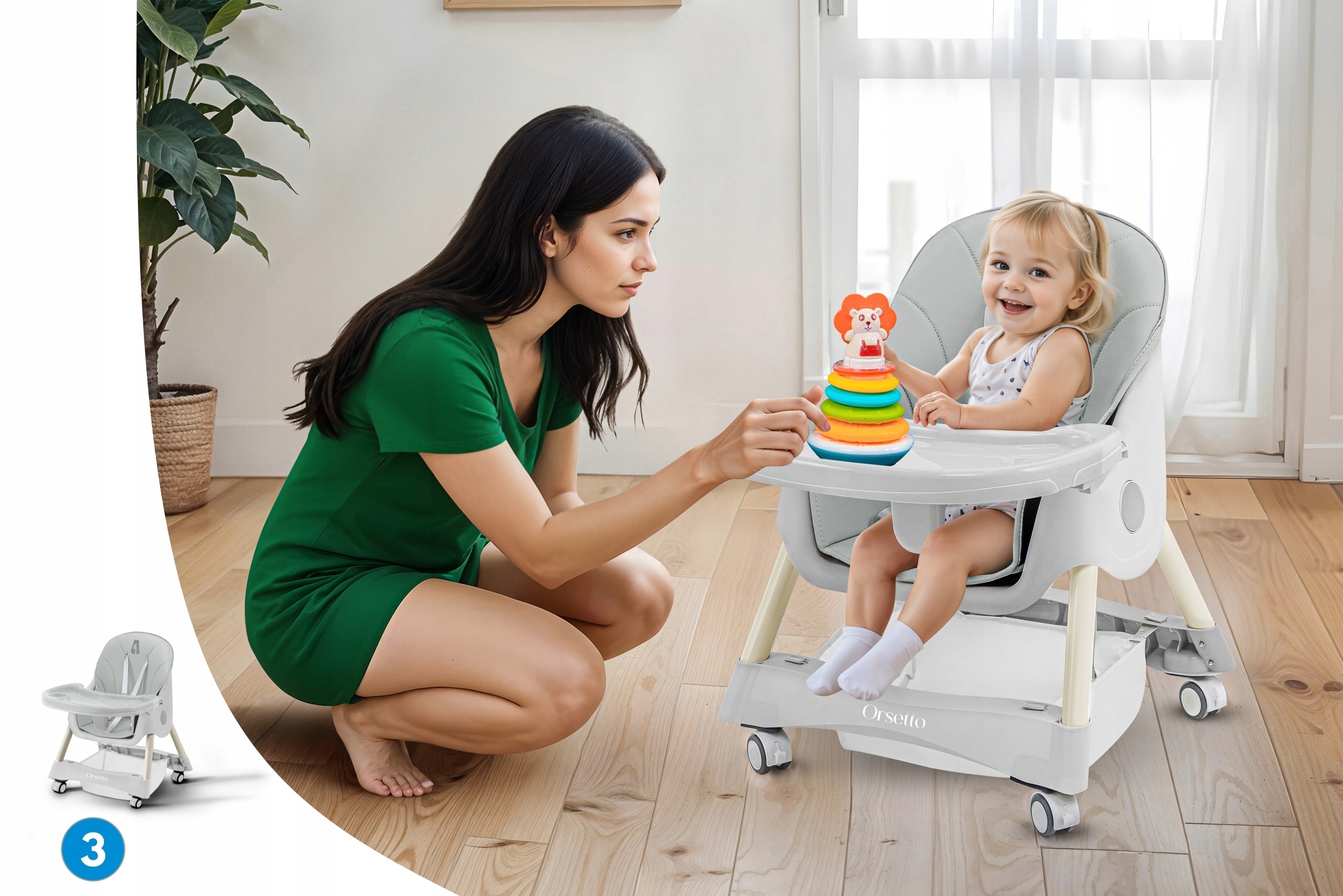 Стульчик для кормления 4 в 1 ORSETTO KARMELEK Повседневная жизнь родителей полна испытаний, поэтому мы рады представить наш стульчик для кормления ORSETTO KARMELEK. Он был создан, чтобы сделать повседневные обязанности проще и приятнее. Откройте для себя универсальный стульчик для кормления 4-в-1, который адаптируется к потребностям вашего ребенка по мере его роста. Благодаря различным конфигурациям – высокий отдельно стоящий стул, высокий стул, придвинутый к столу, низкий отдельно стоящий стул и низкий стул – повседневные задачи станут проще и менее трудоемкими. ORSETTO KARMELEK – ваш незаменимый помощник в любой ситуации.