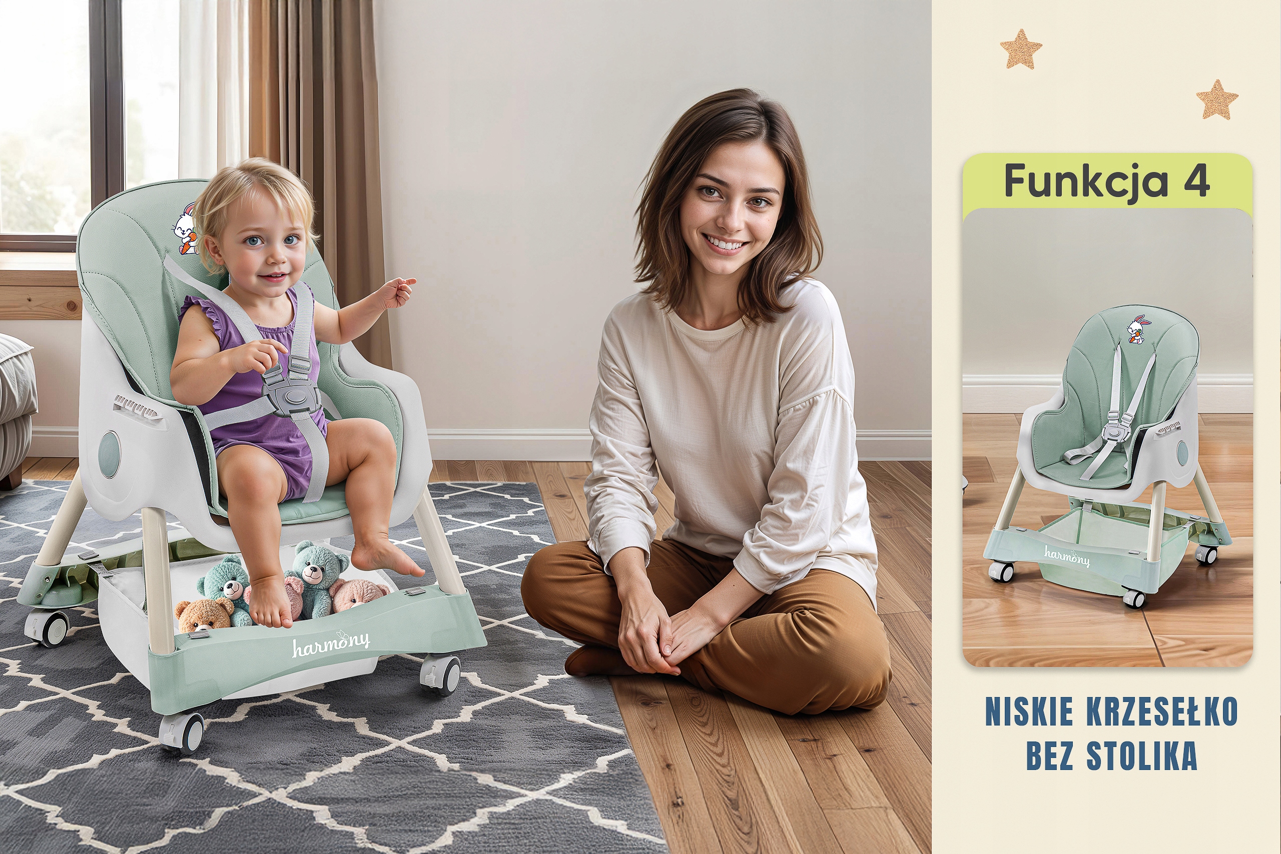 Высокий стул 4in1 Гармония корица. родители - это повседневные проблемы, поэтому мы создали стул Harmony Cinnamonek, который поможет вам заботиться о вашем ребенке. Этот инновационный, многофункциональный стул 4IN1 растет вместе с вашим ребенком и приспосабливается к его изменяющимся потребностям. Благодаря четырем режимам использования - от высокого кресла с подносом до низкого, свободного стула - ежедневные действия становятся простыми и меньше времени. Harmony Cinnamon будет вашей надежной поддержкой на каждом этапе развития ребенка. с подносом, высоким стулом за столом, низким стулом с подносом и низким стулом Отличный. Защита. .. Директива ЕС