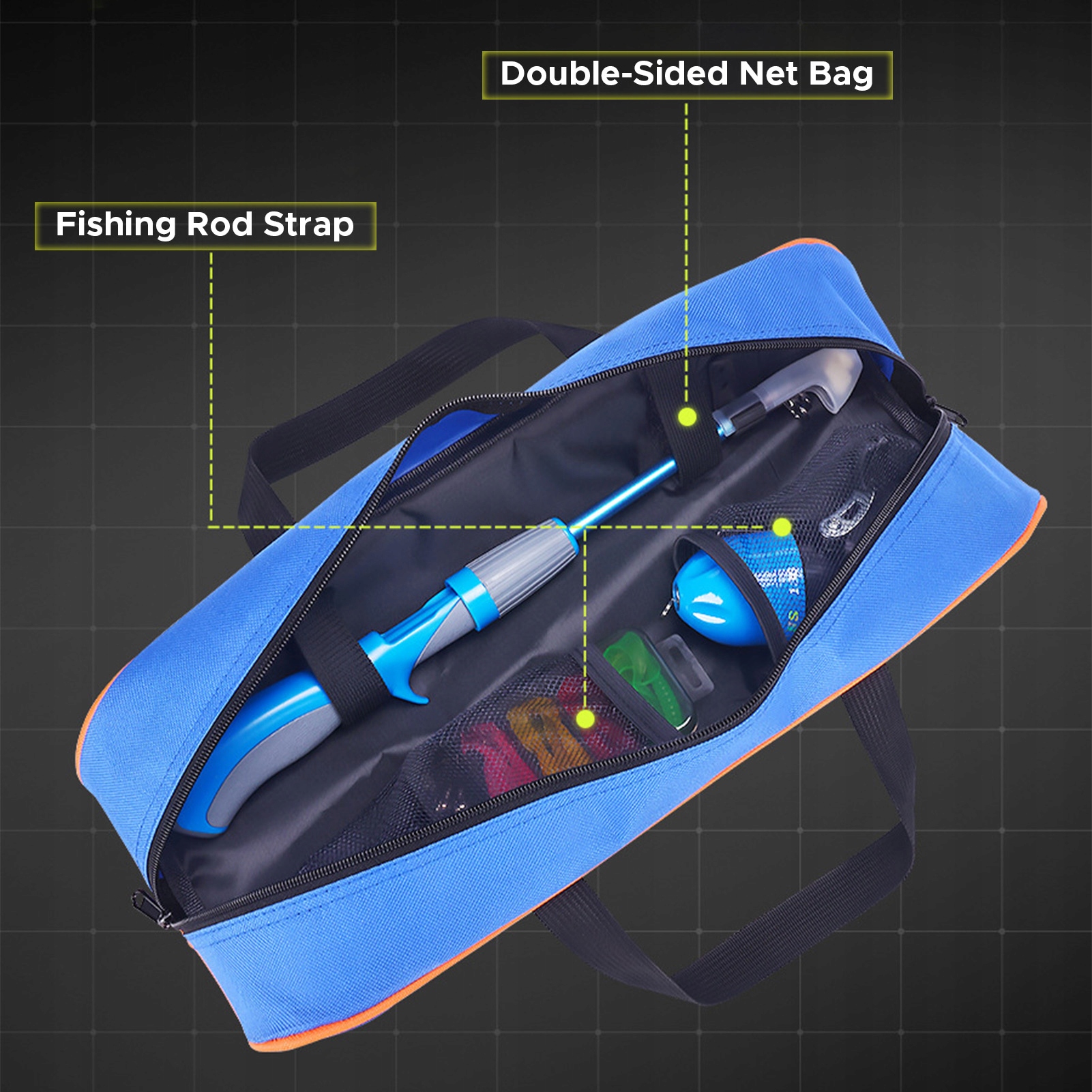 3. В этот детский рыболовный набор входит телескопическая удочка, рыболовная катушка, рыболовный крючок, рыболовные приманки, форма с 8 кольцами и дорожная сумка, в которой есть все необходимое для начала работы.