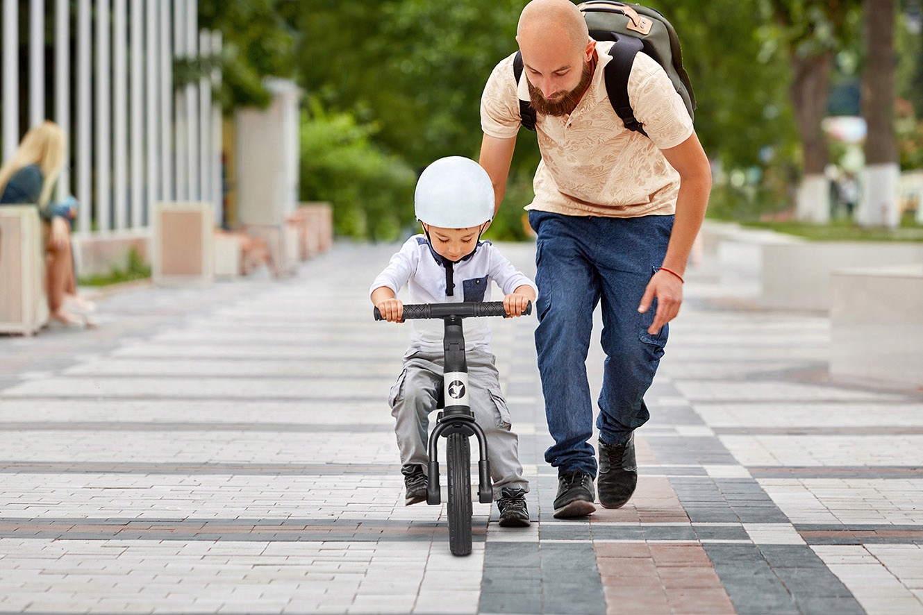 Трехколесный велосипед – для детей от 2 до 3 лет. В этой конфигурации на велосипеде установлены педали и разнесены задние колеса. Подгоняем сиденье под рост ребенка так, чтобы он мог легко дотянуться до педалей слегка согнутыми ногами. Трехколесный велосипед безопасен и учит плавному педалированию.