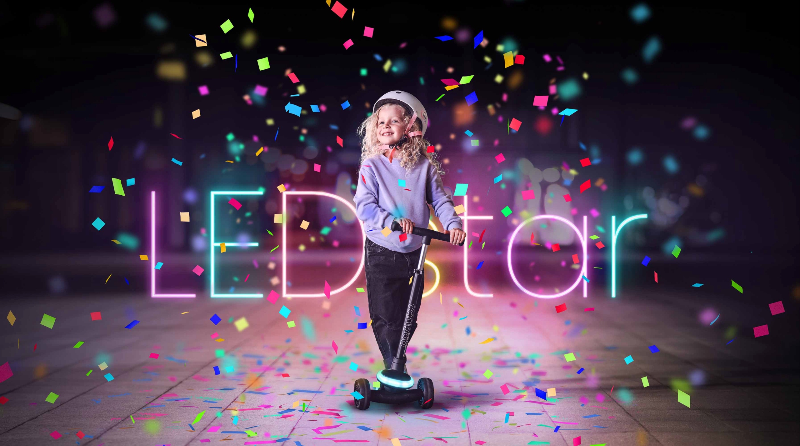 В модели LEDstar мы позаботились обо всех деталях. Широкие резиновые колеса, материалы высочайшего качества и надежная система поворота — основа безопасной игры. Чтобы сделать каждую поездку еще более увлекательной, мы добавили функции, которые очаруют каждого ребенка. Светодиодная система освещения позволяет выбрать один из 13 динамических многоцветных режимов или 7 цветов в одноцветном режиме. Исследуйте волшебный мир увлекательных световых эффектов!