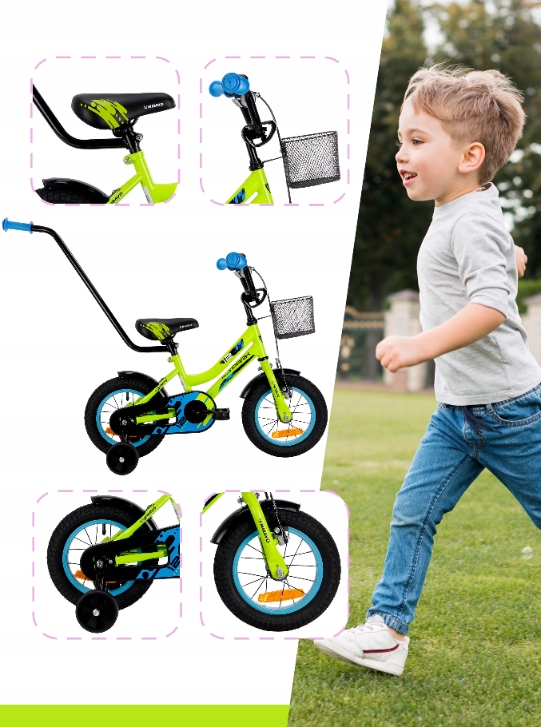 ДЕТСКИЙ ВЕЛОСИПЕД 12 ДЮЙМОВ, ВЕЛОСИПЕД ДЛЯ МАЛЬЧИКОВ, КОРЗИНА И НАПРАВЛЯЮЩИЕ + БЕСПЛАТНО