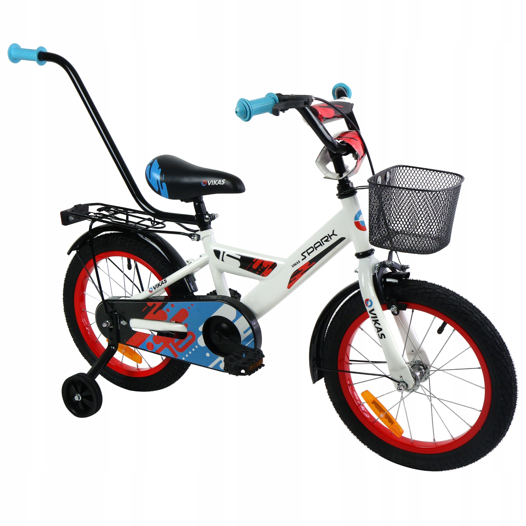 ВЕЛОСИПЕД ДЕТСКИЙ VIKAS SPARK БЕЛО-КРАСНО-СИНИЙ РАЗМЕР 16 ДЮЙМОВ