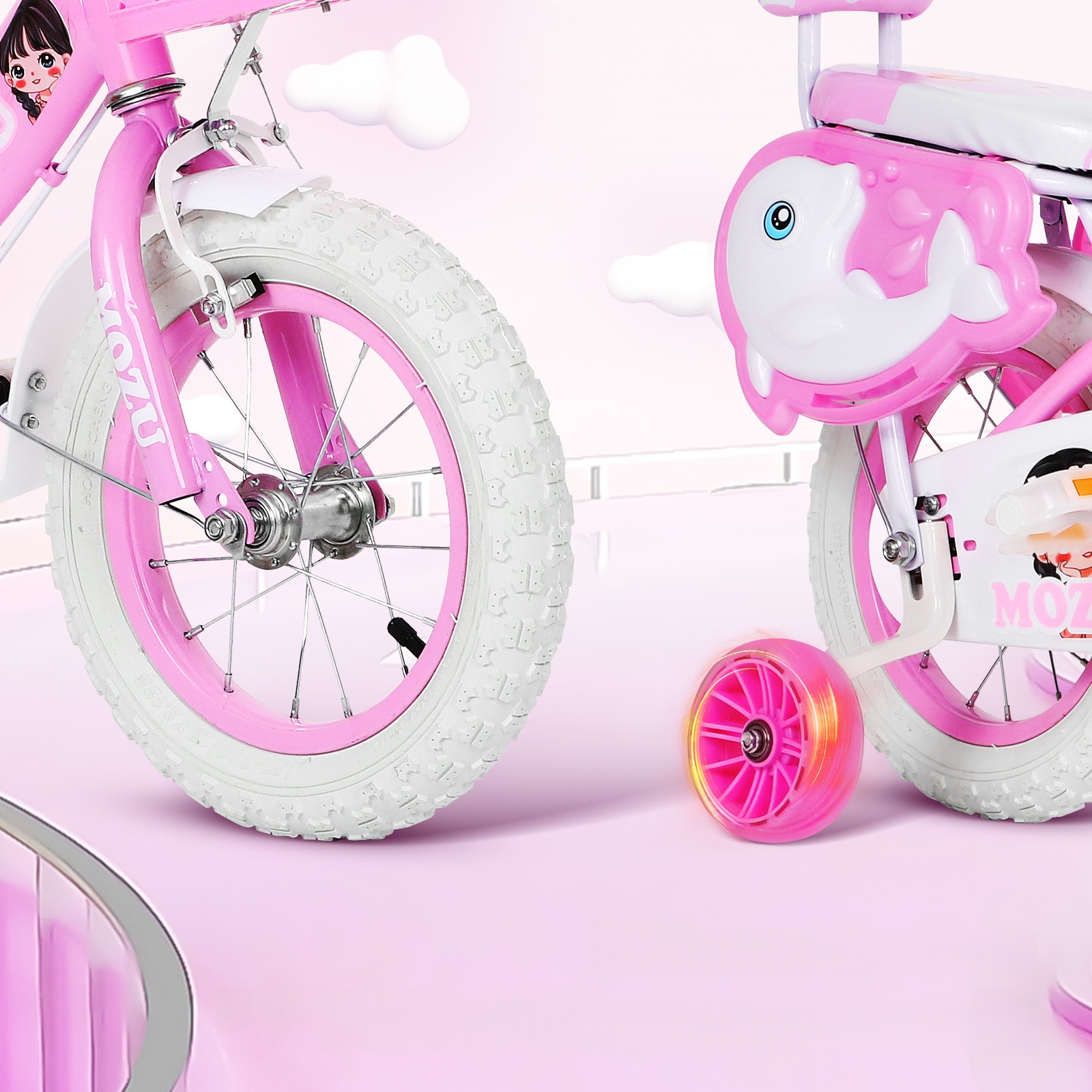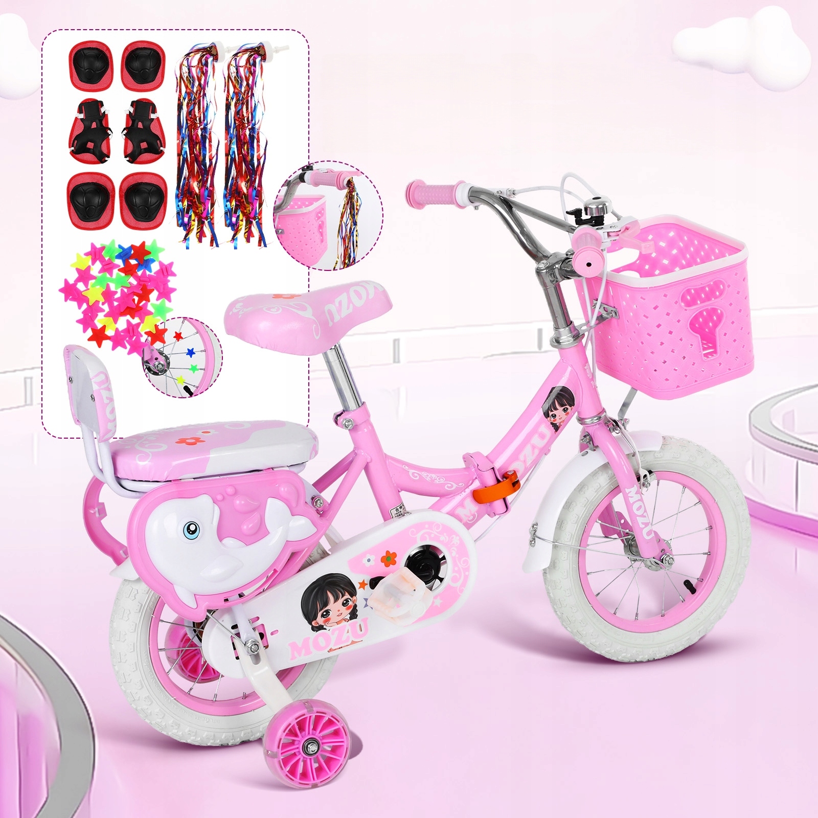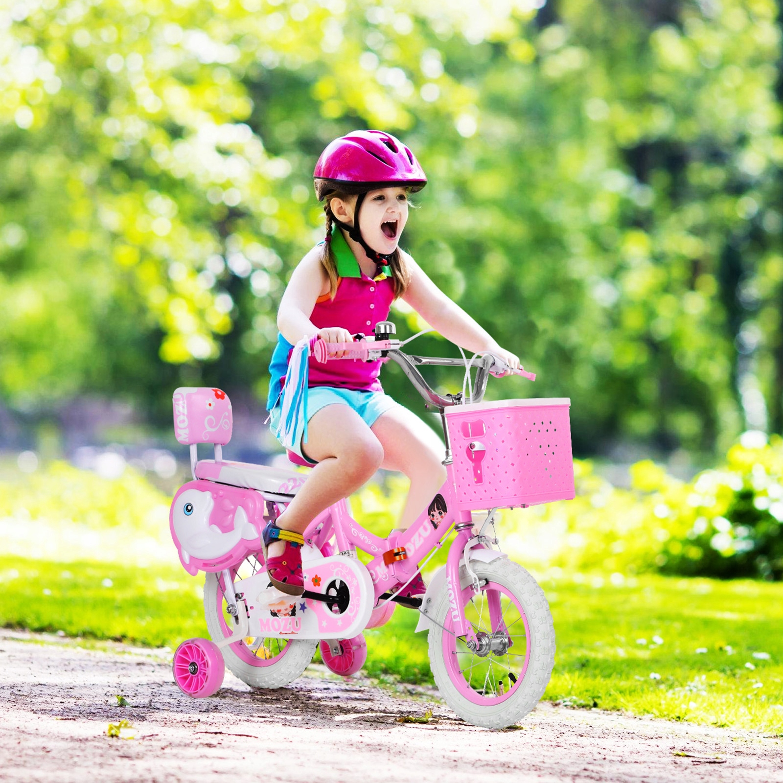 Велосипед для малышей с обучающими колесами для девочек 2-12 лет - Велосипед для девочек с корзиной и сиденьем для кукол - 16 Вт Детский велосипед 100-120 см