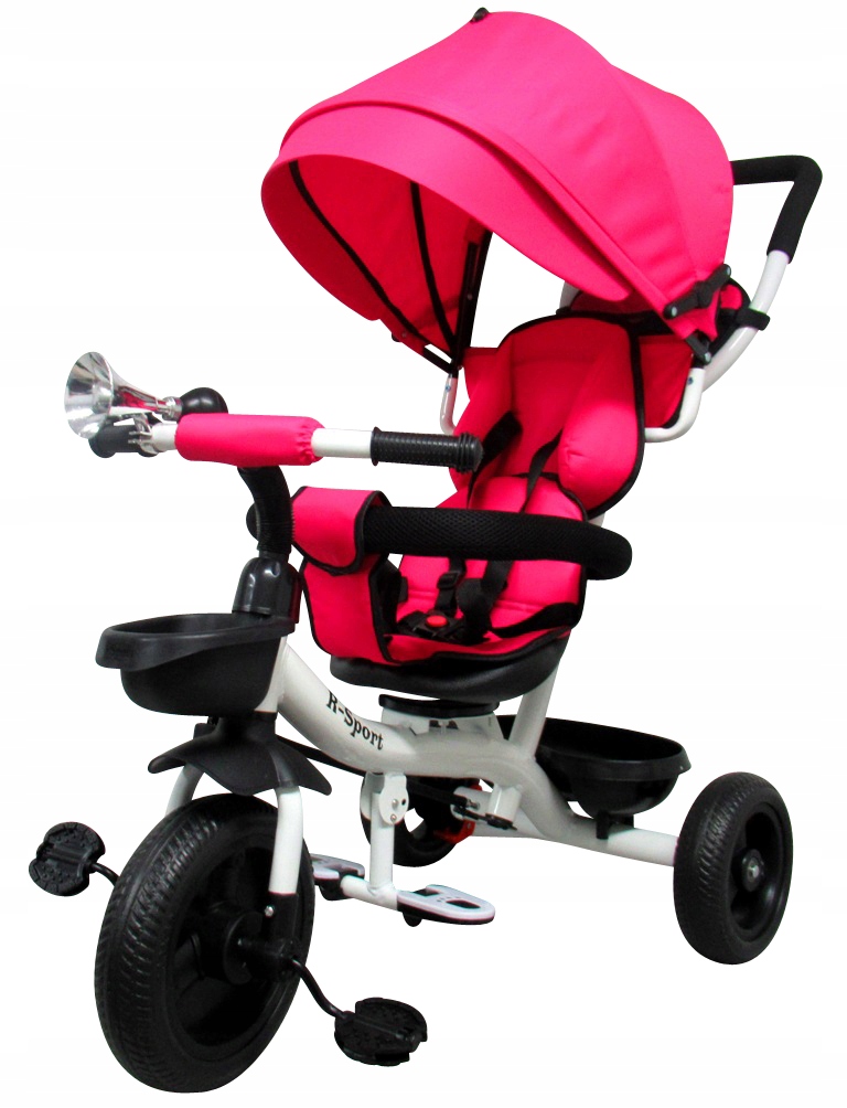 1. Велосипед в полной комплектации: Капюшон защищает от солнца, поручни и ремни защищают ребенка, родитель управляет задней ручкой (ручка управляет рулем, благодаря чему велосипед поворотный), п><р>2. Капюшон и седло можно поворачивать 360 градусов - в зависимости от предпочтений родителя или направления движения по отношению к солнцу (чтобы солнце не попадало на ребенка,