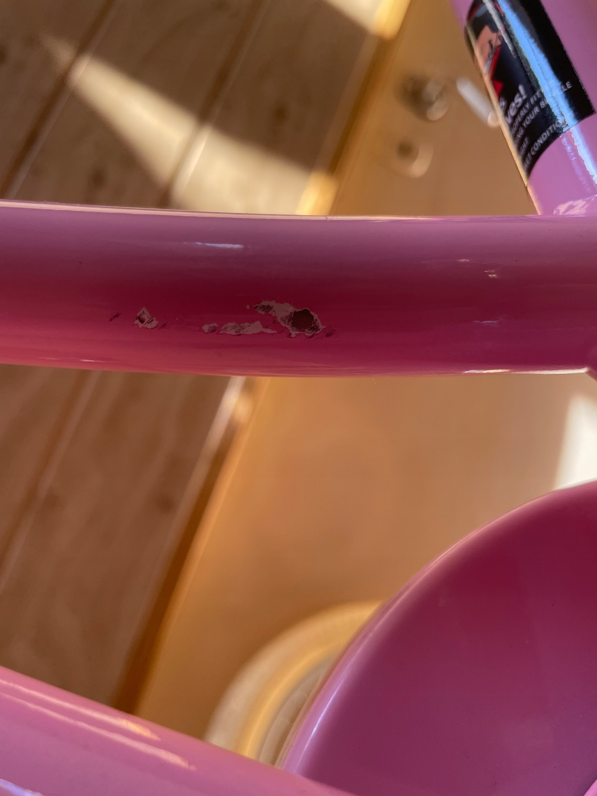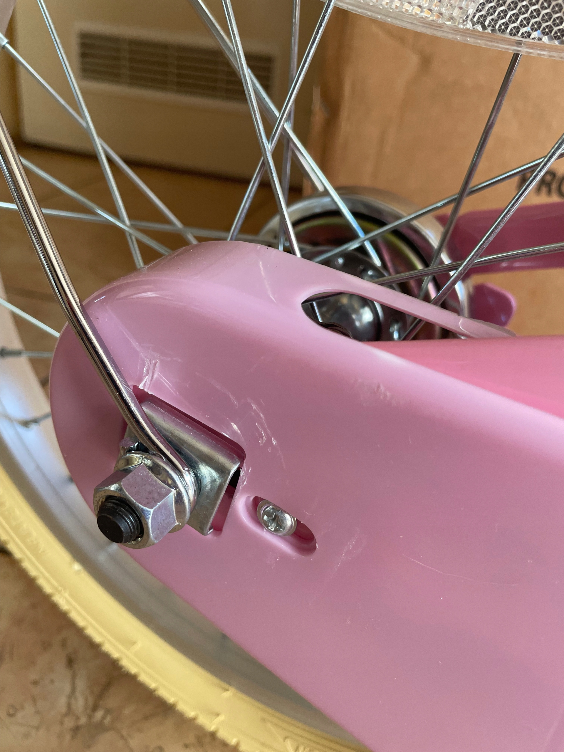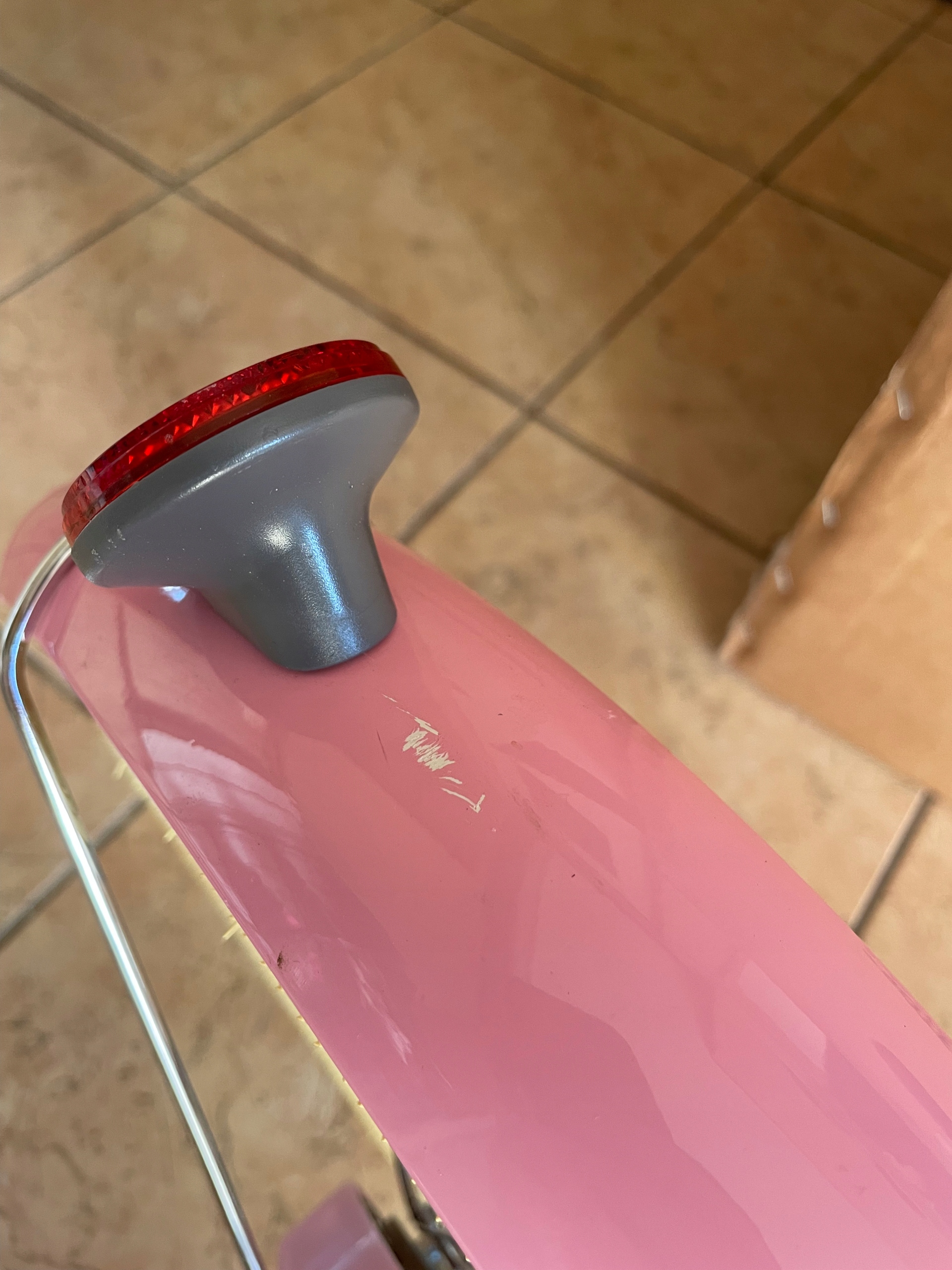 Велосипед вернулся. Он имеет легкую грязь на шинах и царапинах/царапинах на раме и крылости, фотографии которых я представляю ниже. Кроме того, нет шкипера на колесах и руле. В дополнение к упомянутым визуальным недостаткам, велосипед полностью функционален (он использовался максимум 2 недели).