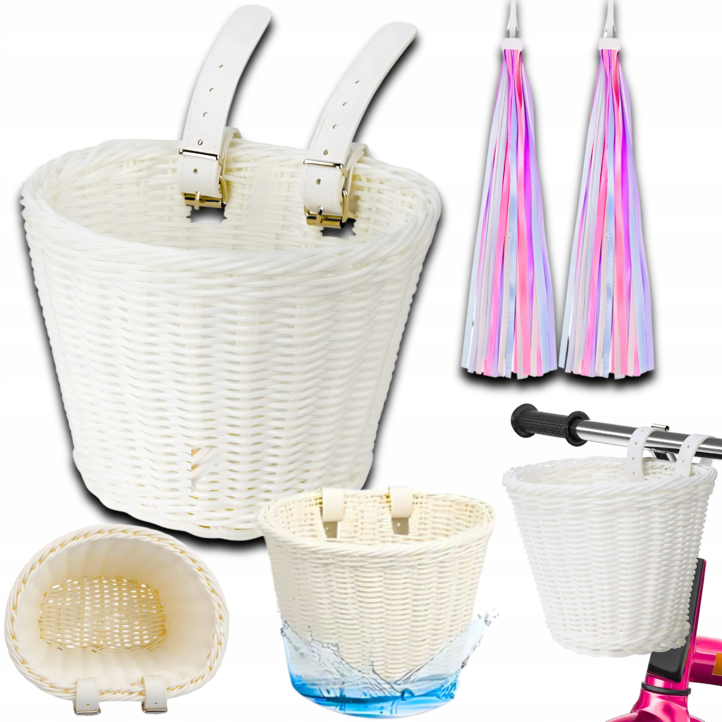 ДЕТСКАЯ ВЕЛОСИПЕДНАЯ КОРЗИНА, БЕЛЫЙ НАБОР АКСЕССУАРОВ ДЛЯ ВЕЛОСИПЕДА, 24Ч ВОДОНЕПРОНИЦАЕМАЯ