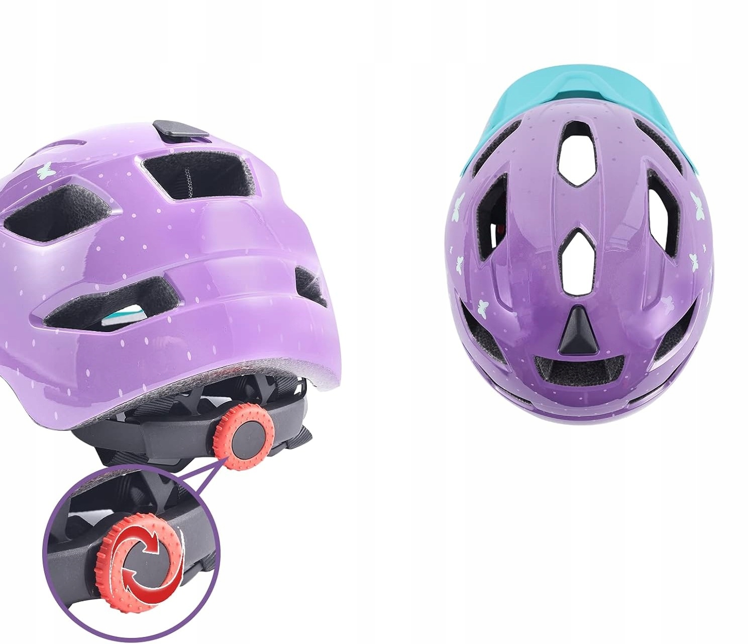 ДЕТСКИЙ ВЕЛОСИПЕДНЫЙ ШЛЕМ 50-57см светло-фиолетовый с козырьком для девочек