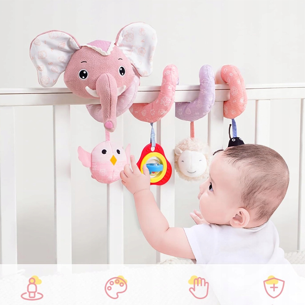 Мы предлагаем универсальную игрушку для младенцев от 0 до 12 месяцев, оснащенные 4 уникальными элементами для подвески - забавный слон с музыкальной коробкой, успокаивающий подрезок, божьей коровки с зеркалом и птичьем, подражая звукам птиц. Игрушка привлекает внимание ребенка различными звуками и текстурами, которые нацелены на стимулирование его чувств.