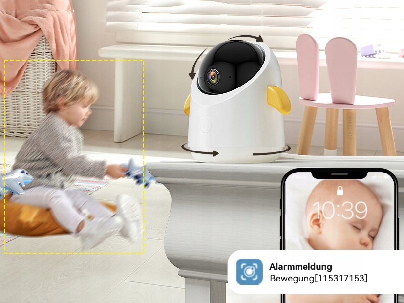 Видеоняня TWUFY с двумя камерами уведомит вас не только при обнаружении плача или шума, но и при обнаружении камерой опасного движения (например, побега из кроватки).