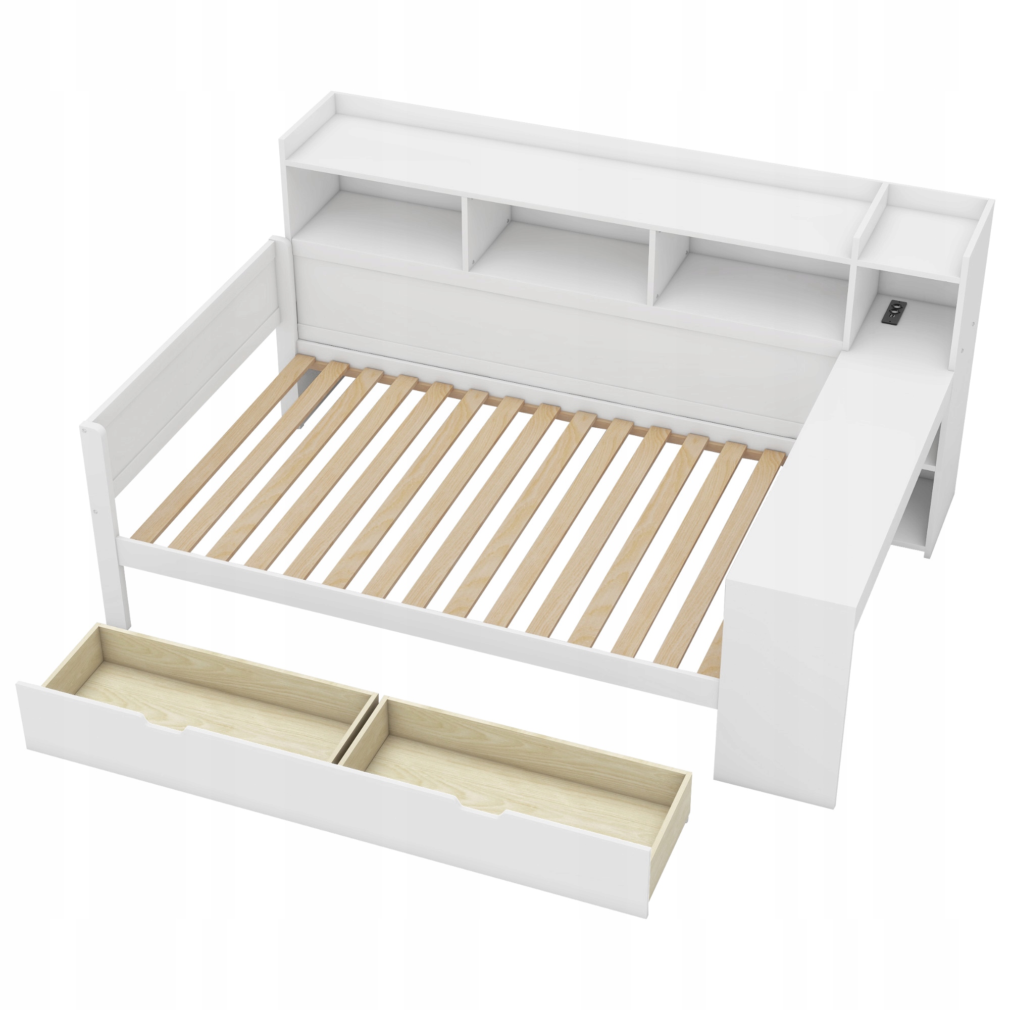 Диван -кровать одинокая детская кровать 2 ящики на стол USB белая полка