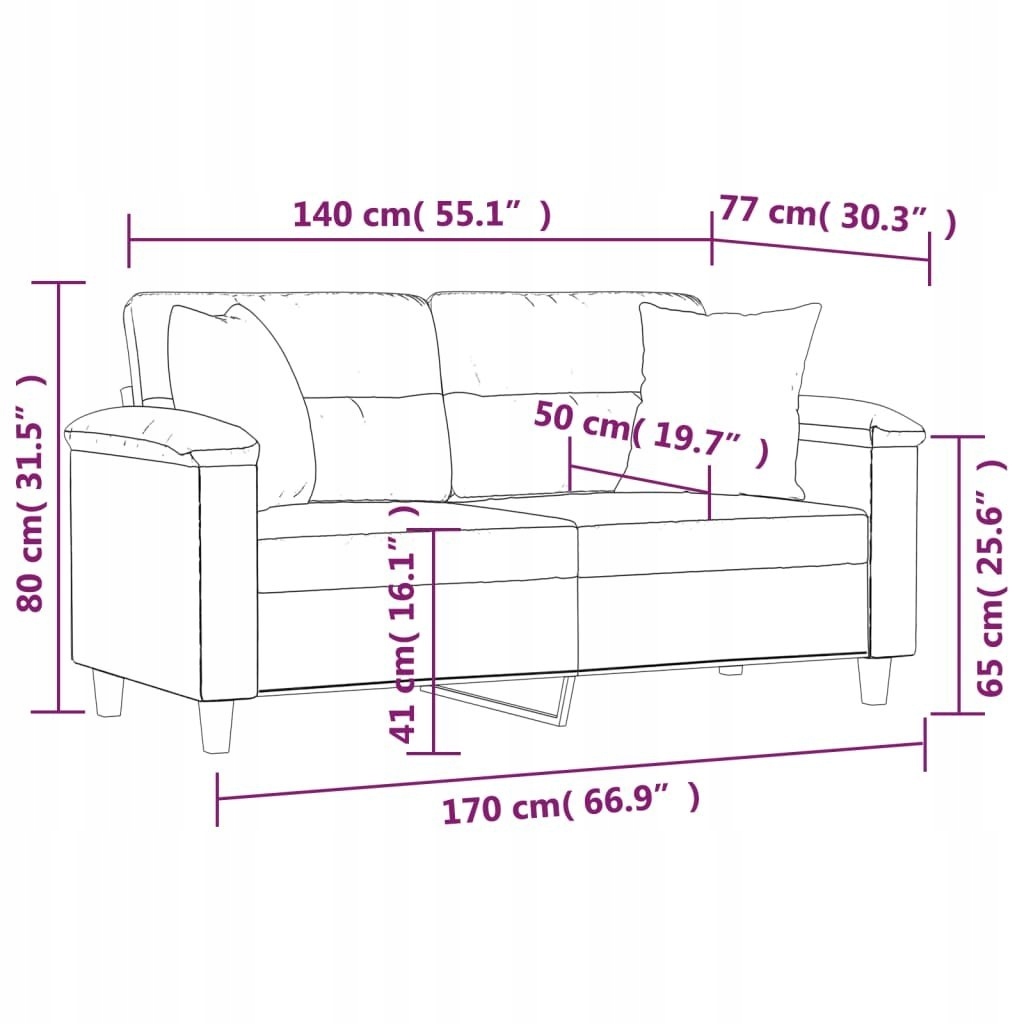 2-местный диван с подушками, светло-серый, 140 см, микрофибра