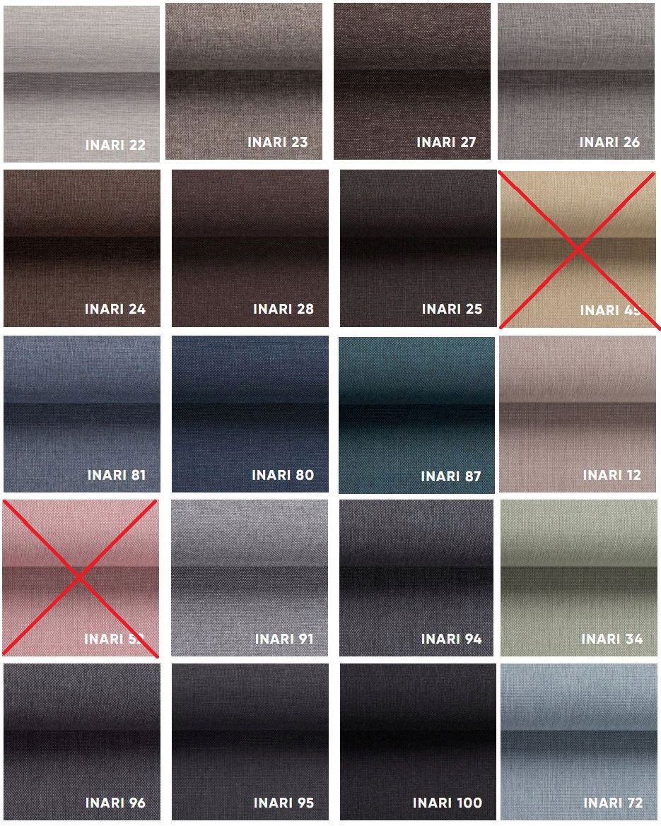 Инари — ткань из группы кос тонкого плетения. Слегка шершавая на ощупь, с заметной текстурой. Ткань плотная и устойчивая к истиранию, а ее простое и прочное плетение делает Инари идеальным материалом для повседневного использования. Материал Инари обладает высокой устойчивостью к выцветанию, поэтому можно не беспокоиться, что красивый цвет мягкой мебели потускнеет.