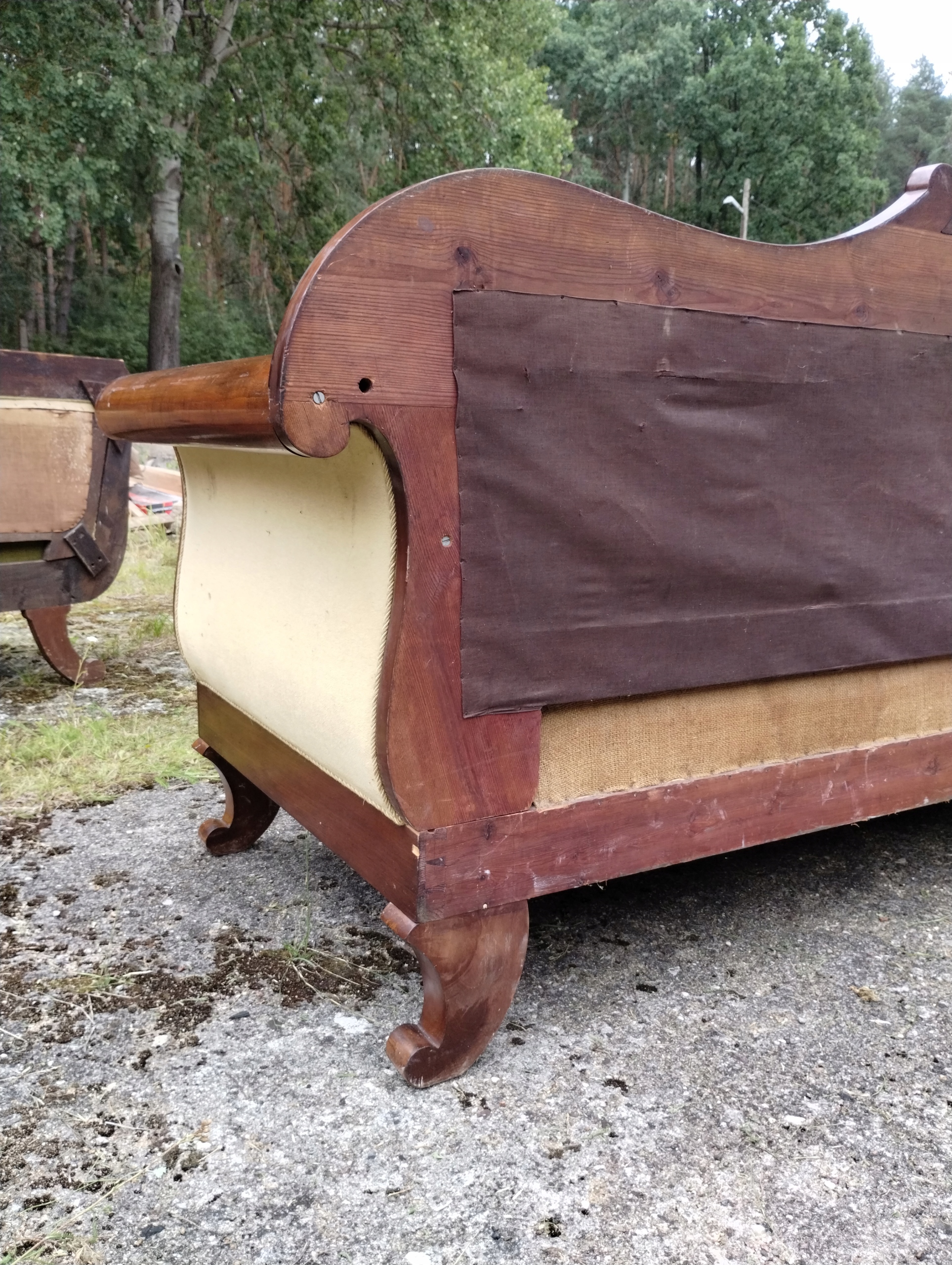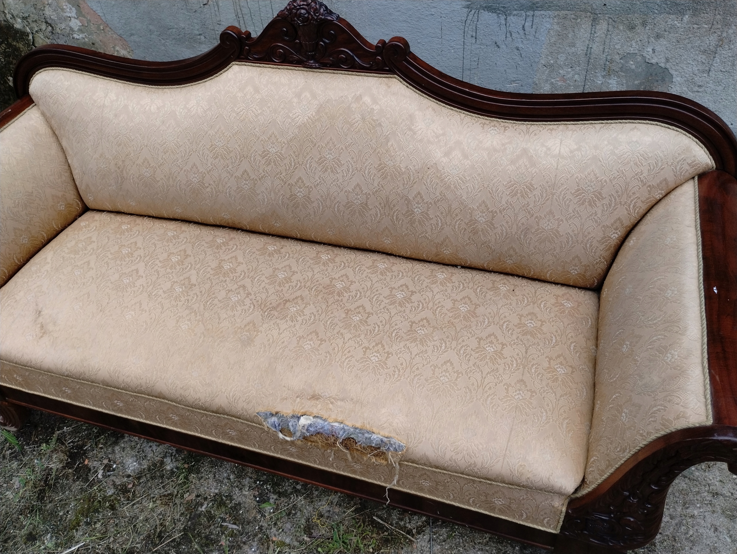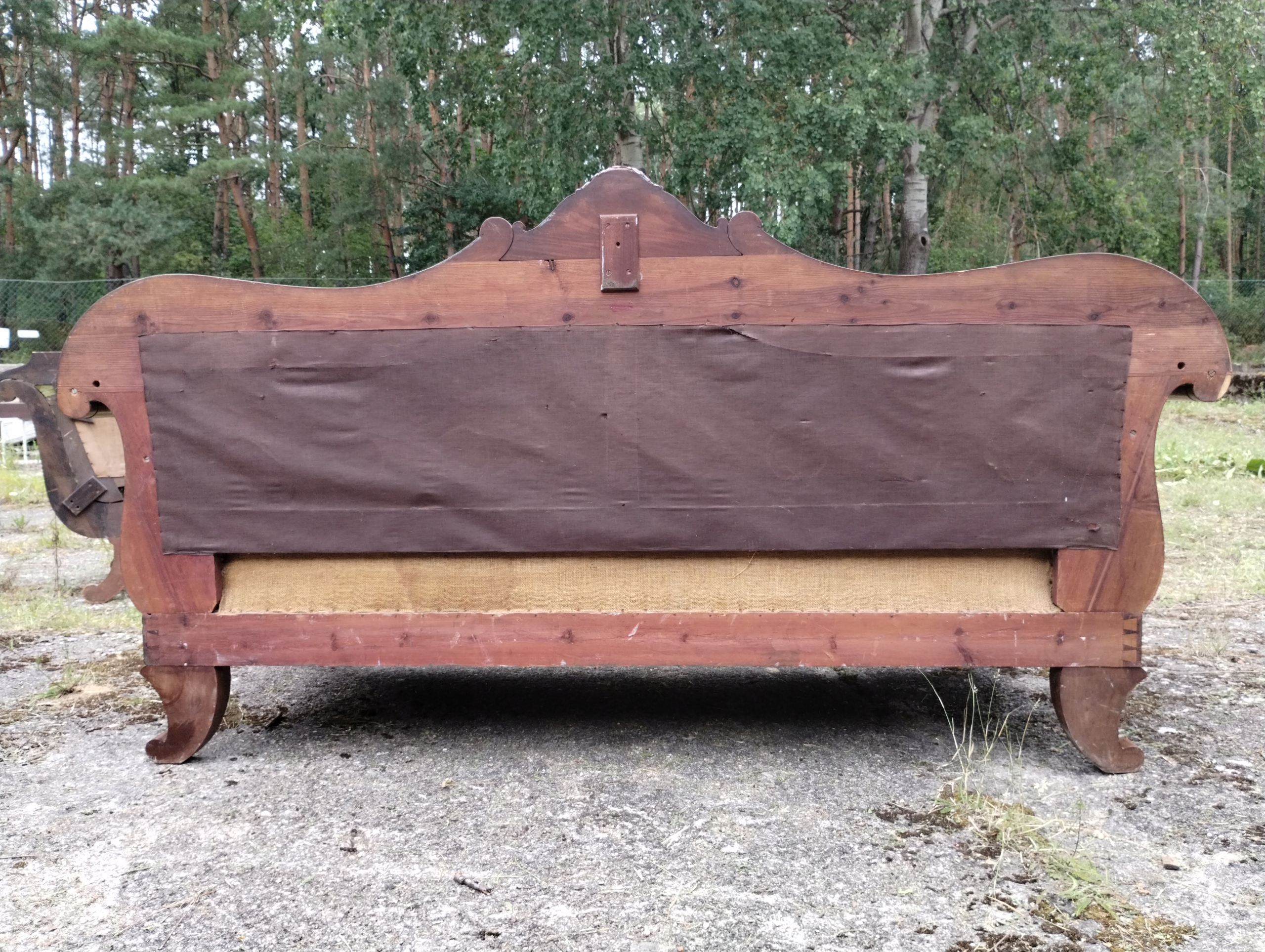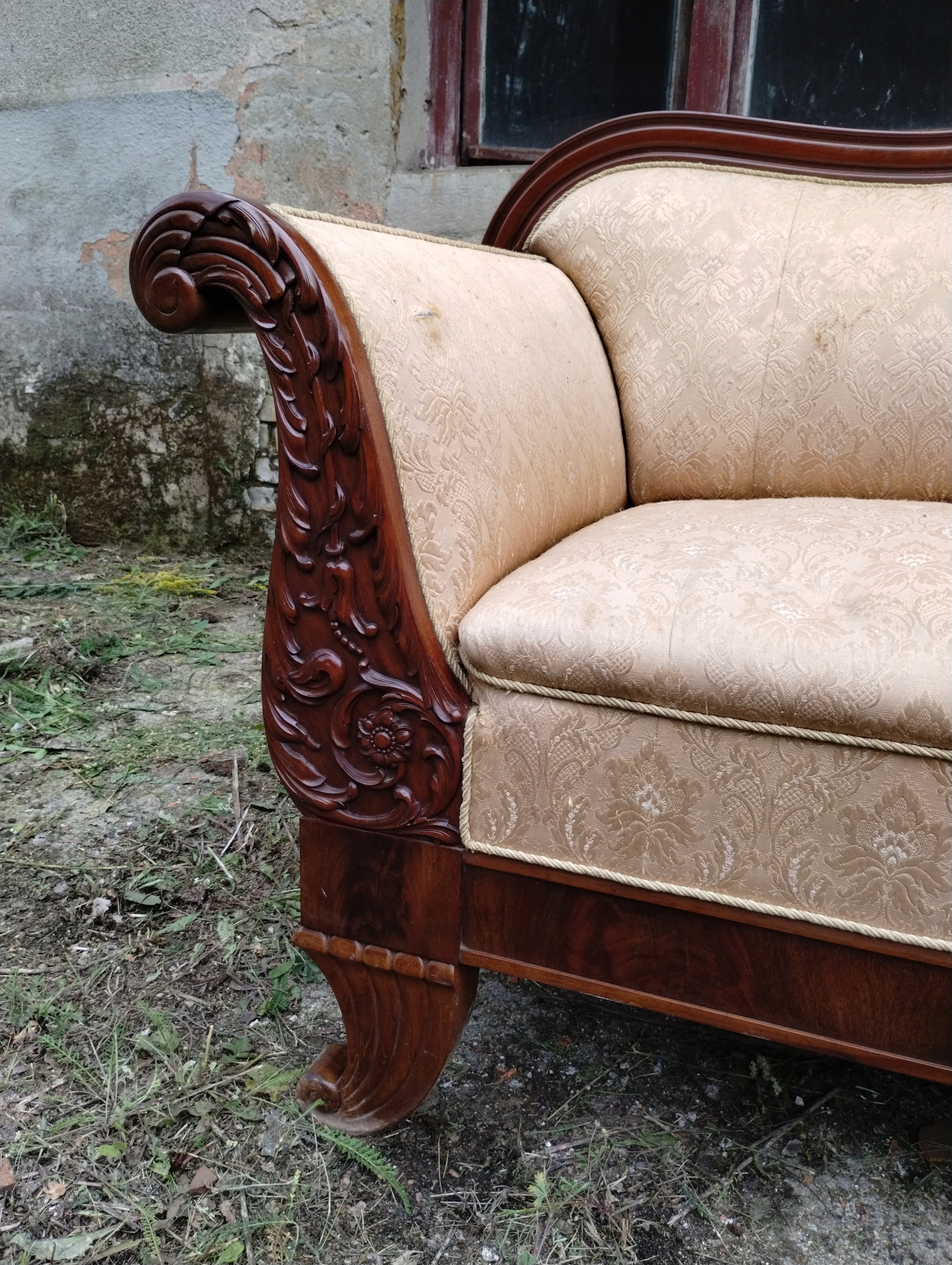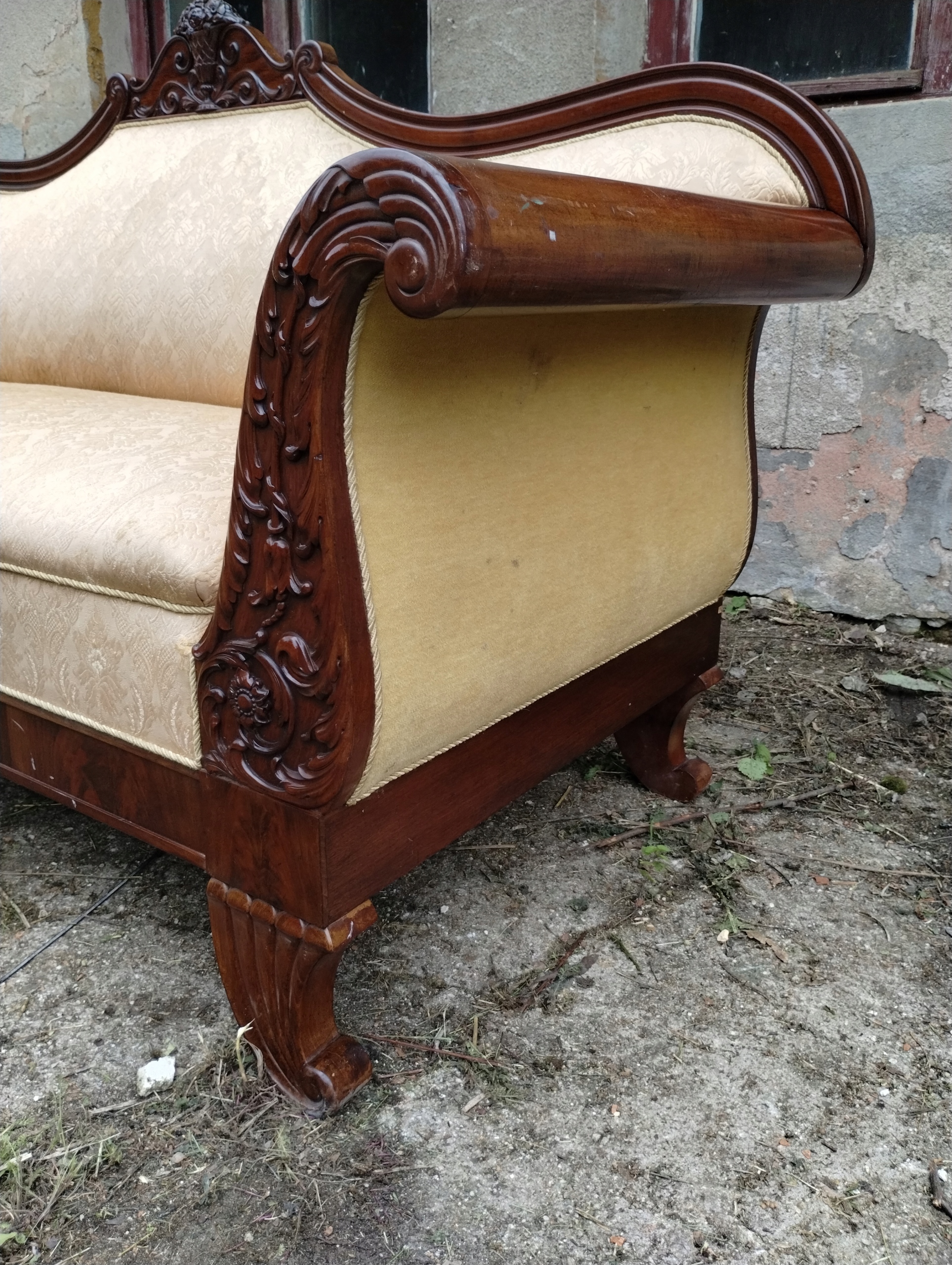 «Диван бідермаєр з червоного дерева, початок 19 століття, різьблений - унікальний антикваріат»