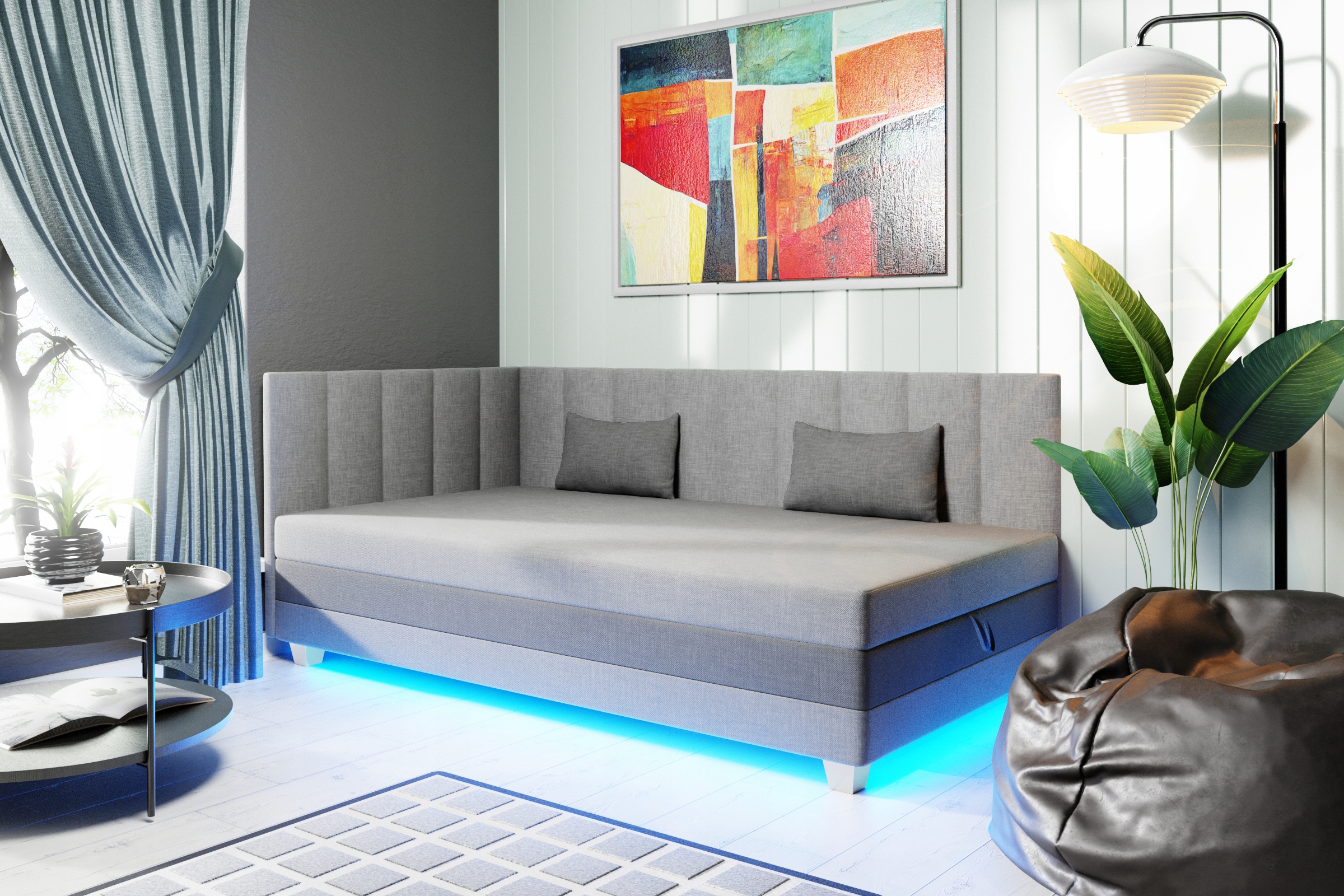 Односпальная кровать, молодежный диван с ящиком для хранения и спинкой