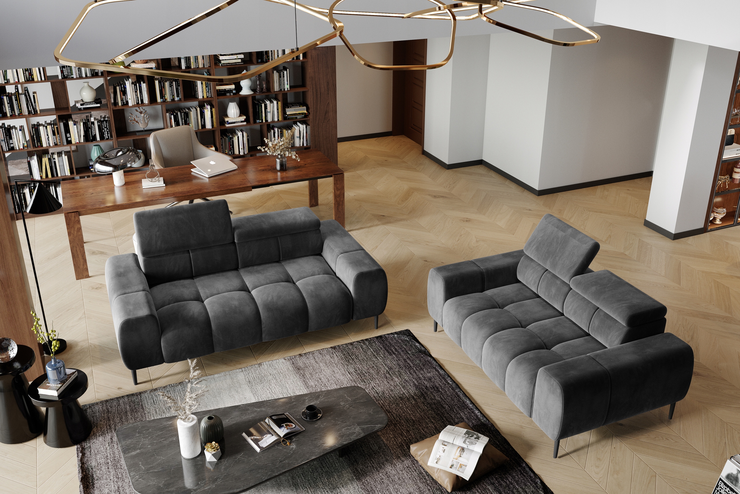 Это настоящая находка для любителей комфорта и хорошего дизайна. Помимо неоспоримого визуального эффекта, комплект для отдыха оснащен дополнительными функциями, повышающими его эксплуатационные преимущества. Одним из них является регулируемый подголовник, позволяющий принять максимально удобное положение тела во время отдыха. Дизайн дивана идеально подходит для современных и минималистичных интерьеров, где независимо от размеров предмет мебели всегда выглядит оригинально и интригующе.