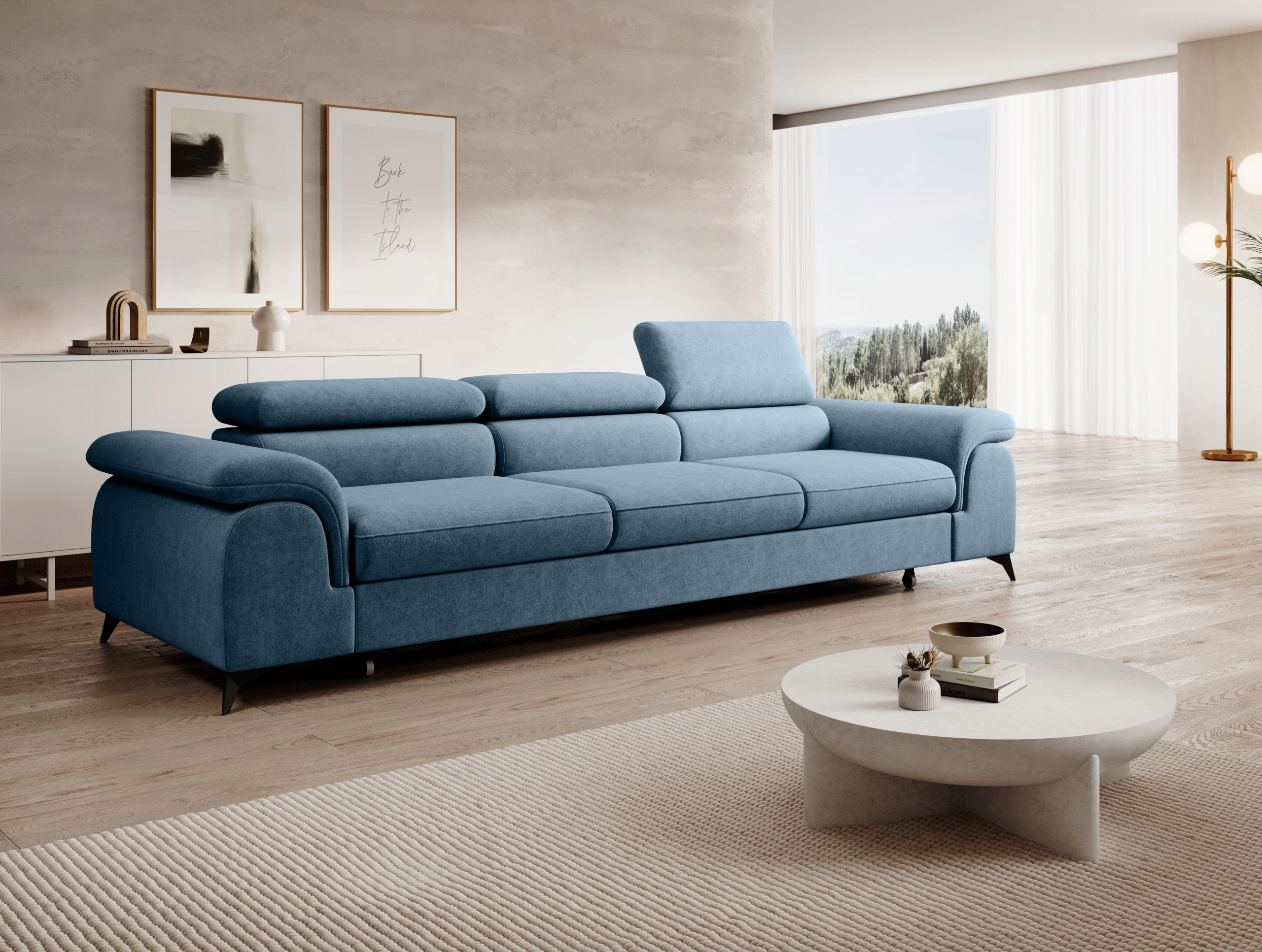 Стильный и современный диван Plaza с регулируемыми подголовниками и функцией спального места.