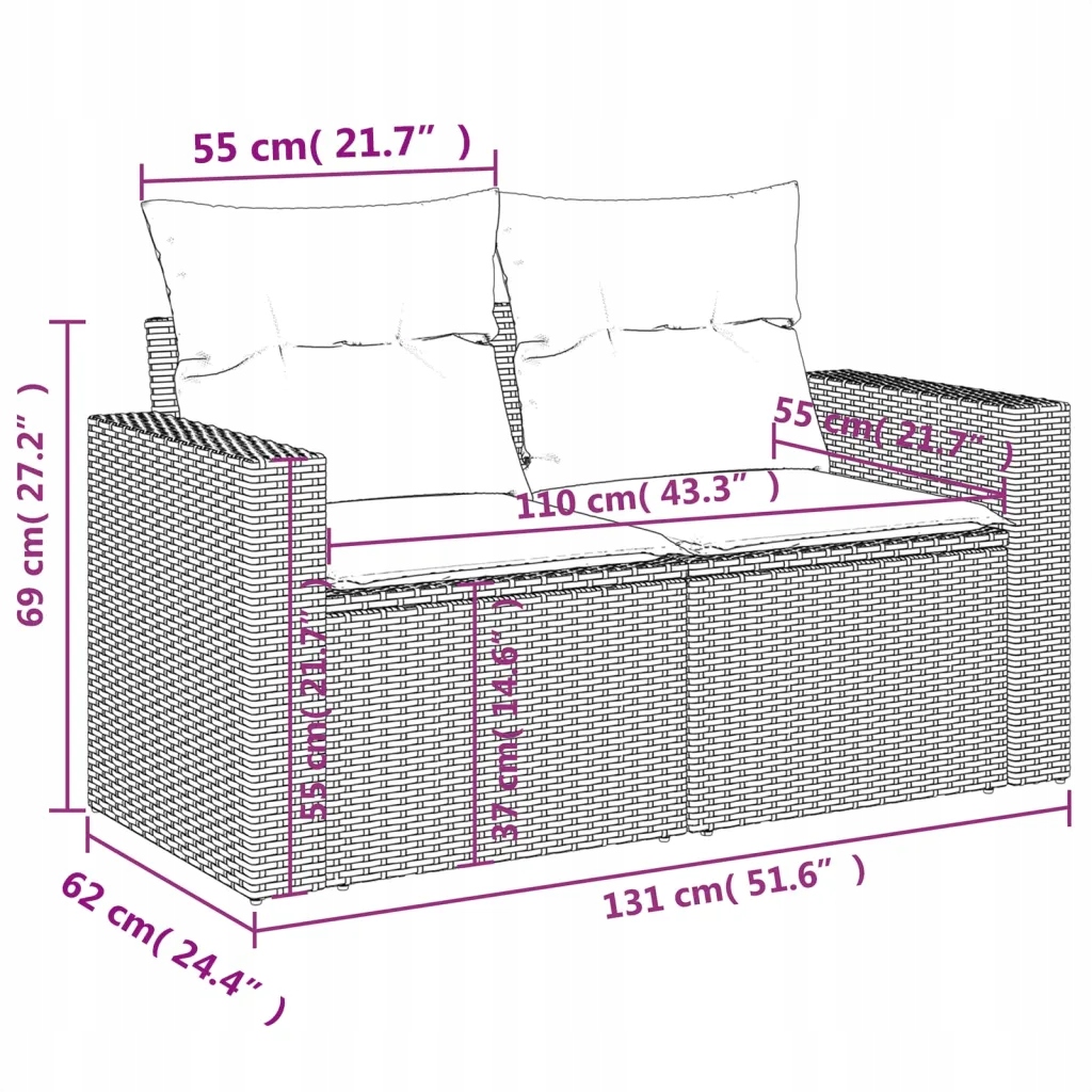 Диван садовый с подушками, 2-местный, коричневый, полиротанг