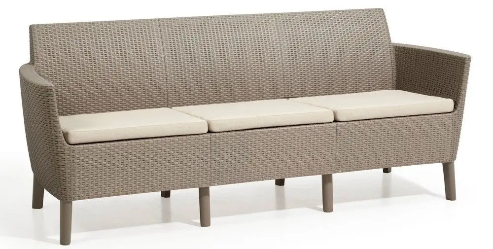 Современная, обтекаемая форма, комфорт и высокое качество – основные преимущества 3-местного дивана Salemo, который можно сочетать с другой мебелью линейки Salemo. Текстура, имитирующая натуральный ротанг, повышает эстетическую ценность изделия. Мебель легко чистится, ее сборка проста, она устойчива к неблагоприятным погодным условиям.
