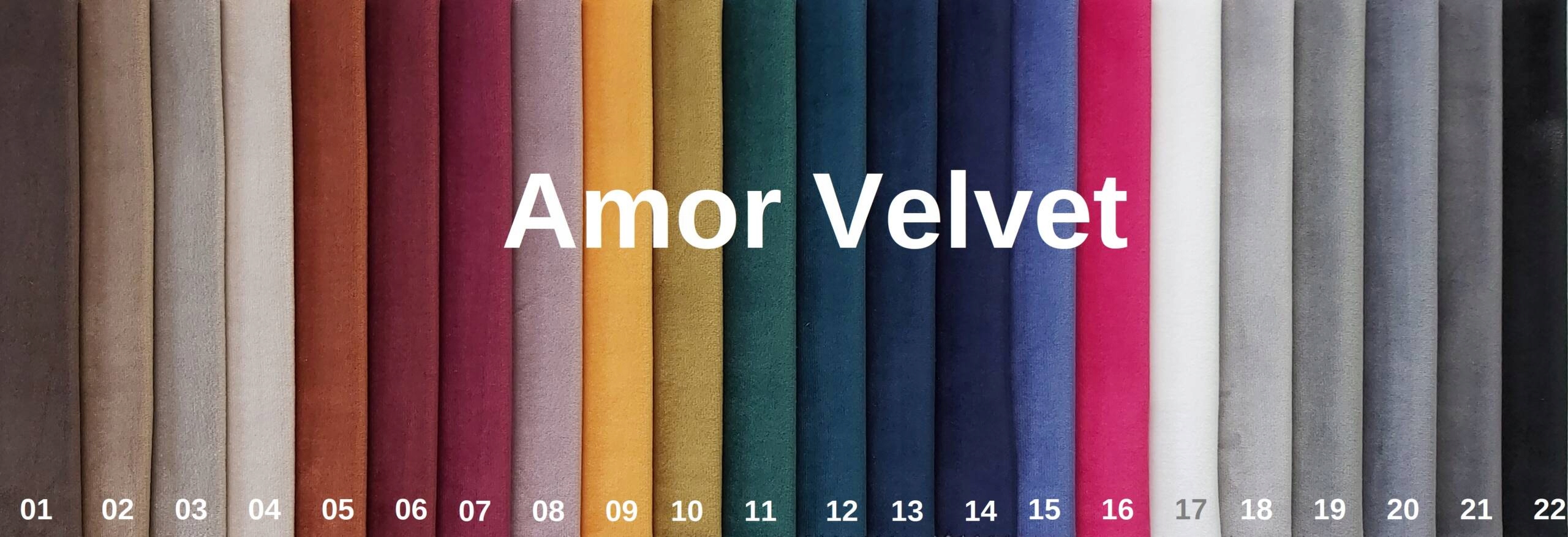 AMORE - высококачественная велюровая обивочная ткань, покрытая защитным слоем «Super Clean», ограничивающим впитывание жидкостей. Мягкая и приятная на ощупь ткань, напоминающая замшу. Износостойкая, плотная и прочная ткань насыщенных цветов.