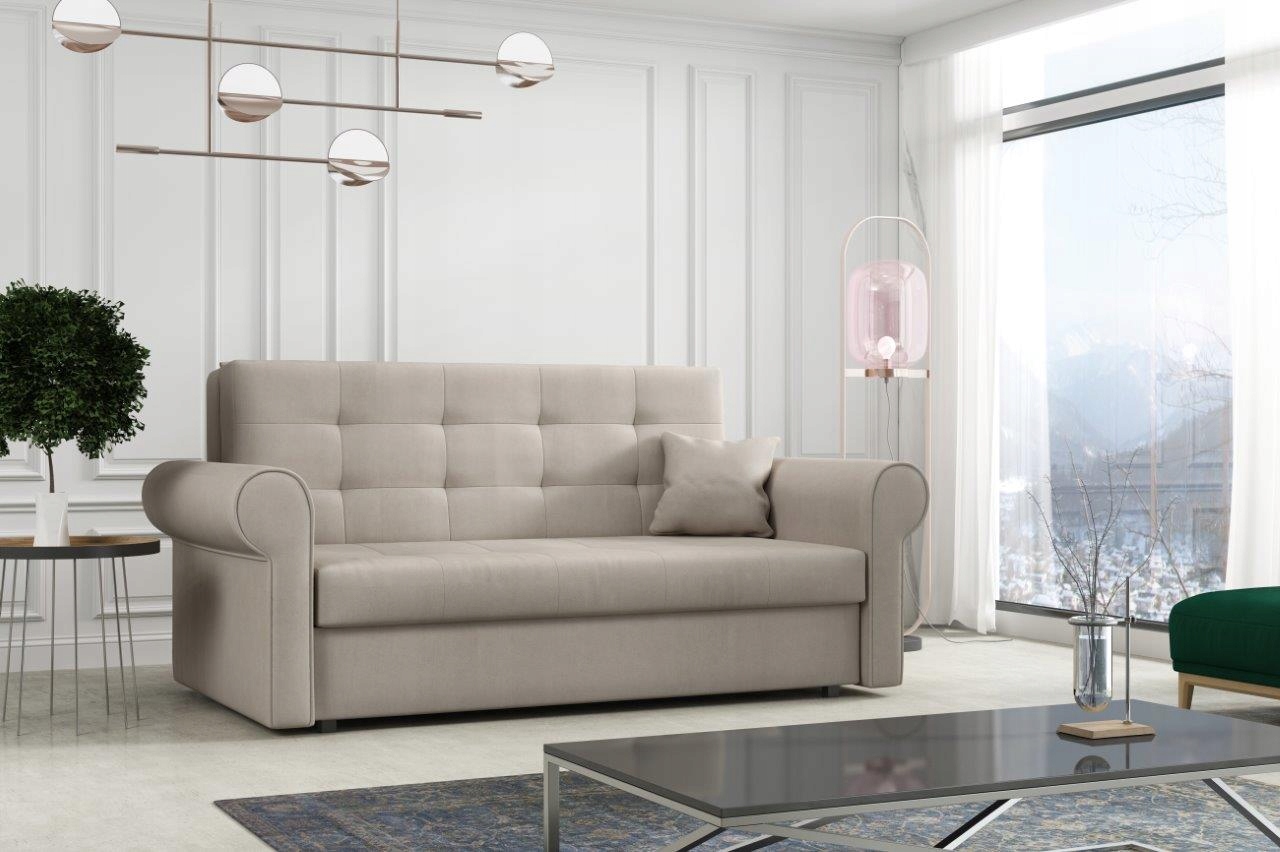 Диван со спальной функцией и контейнером для постельных принадлежностей.