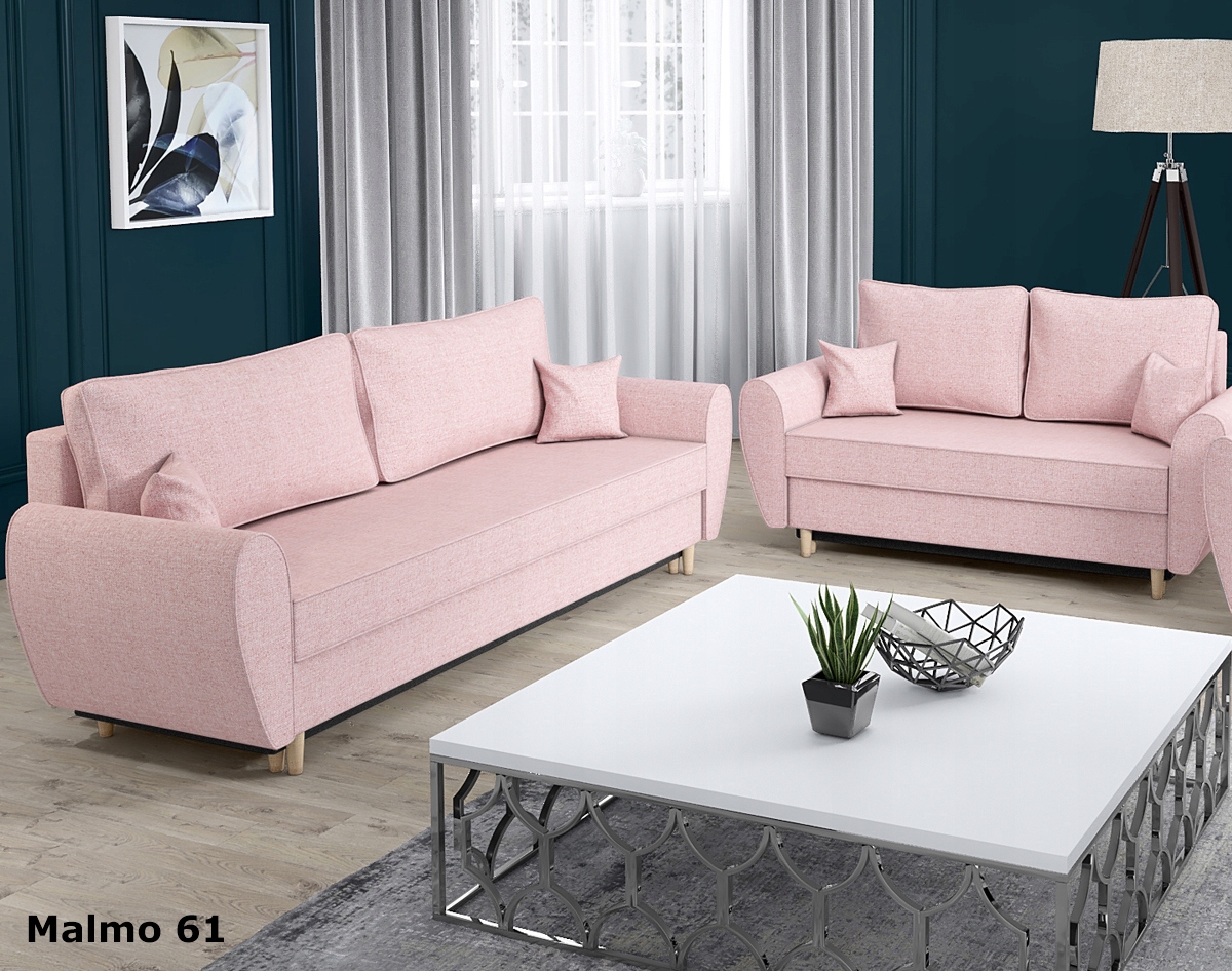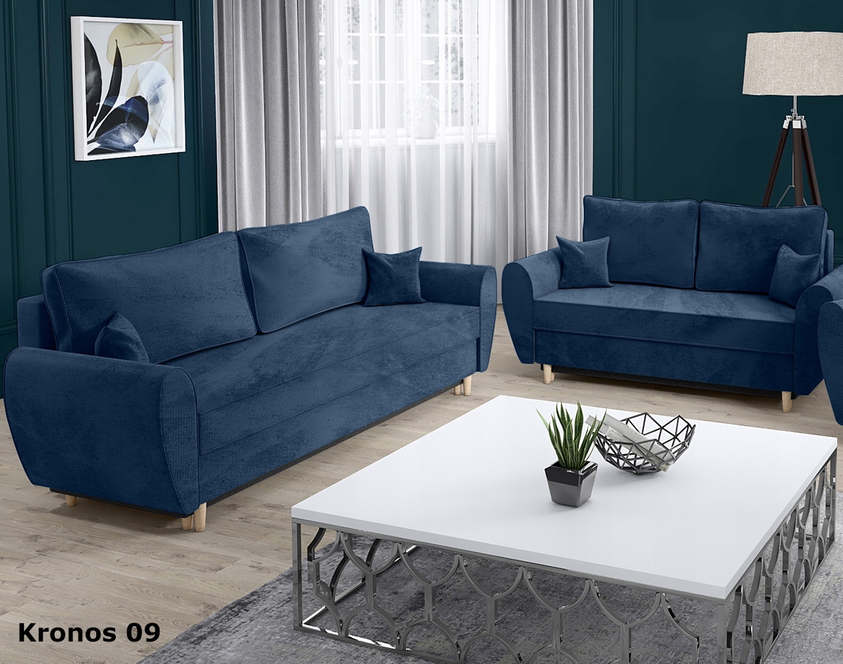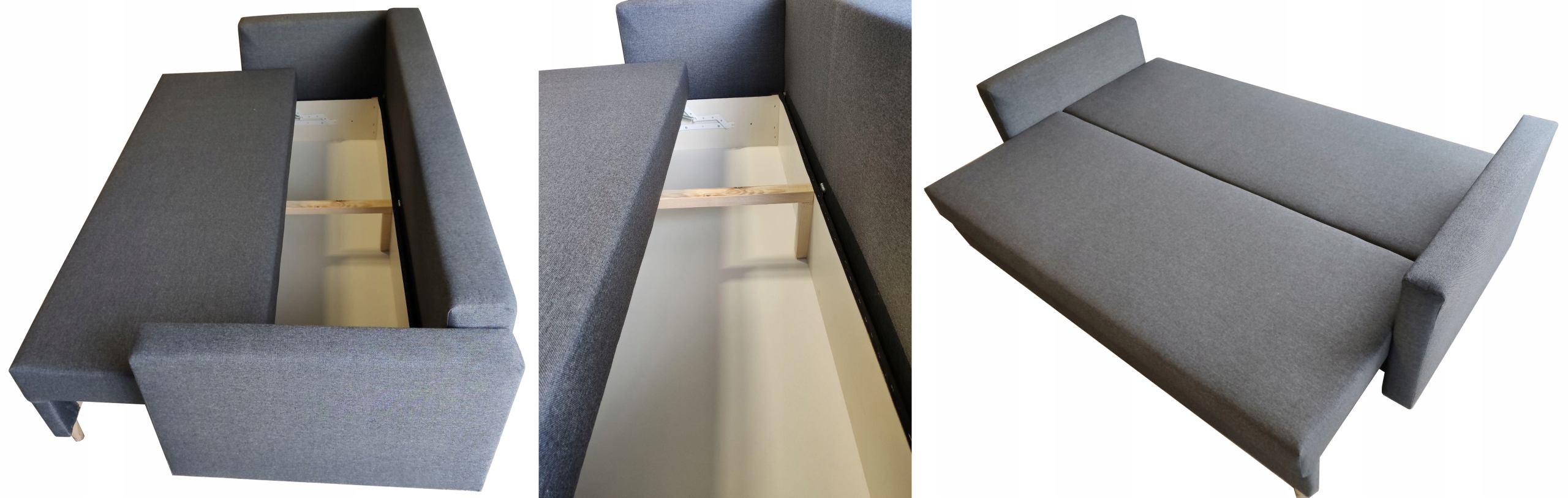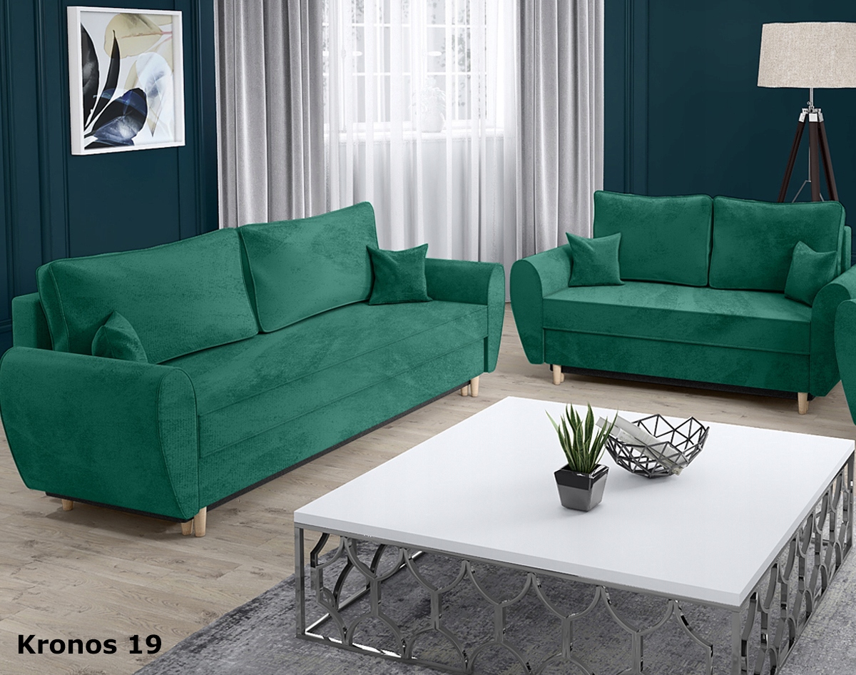 Каркас мебели изготовлен из ДСП и деревянных элементов. Вся спальная поверхность – сиденье и спинка – оснащена пружинами Bonell и высокоэластичной пеной Т-30. Спальная поверхность однородная, в разложенном виде обе половинки находятся на одной высоте. Диваны раскладываются с помощью пружинного автоматического механизма DL. Подушки наполнены поролоновым наполнителем, практичное решение - молния - благодаря этому наволочки можно снять. Передние ножки цвета натурального дерева высотой 10 см, ножки под ящик для постельного белья высотой 5 см.