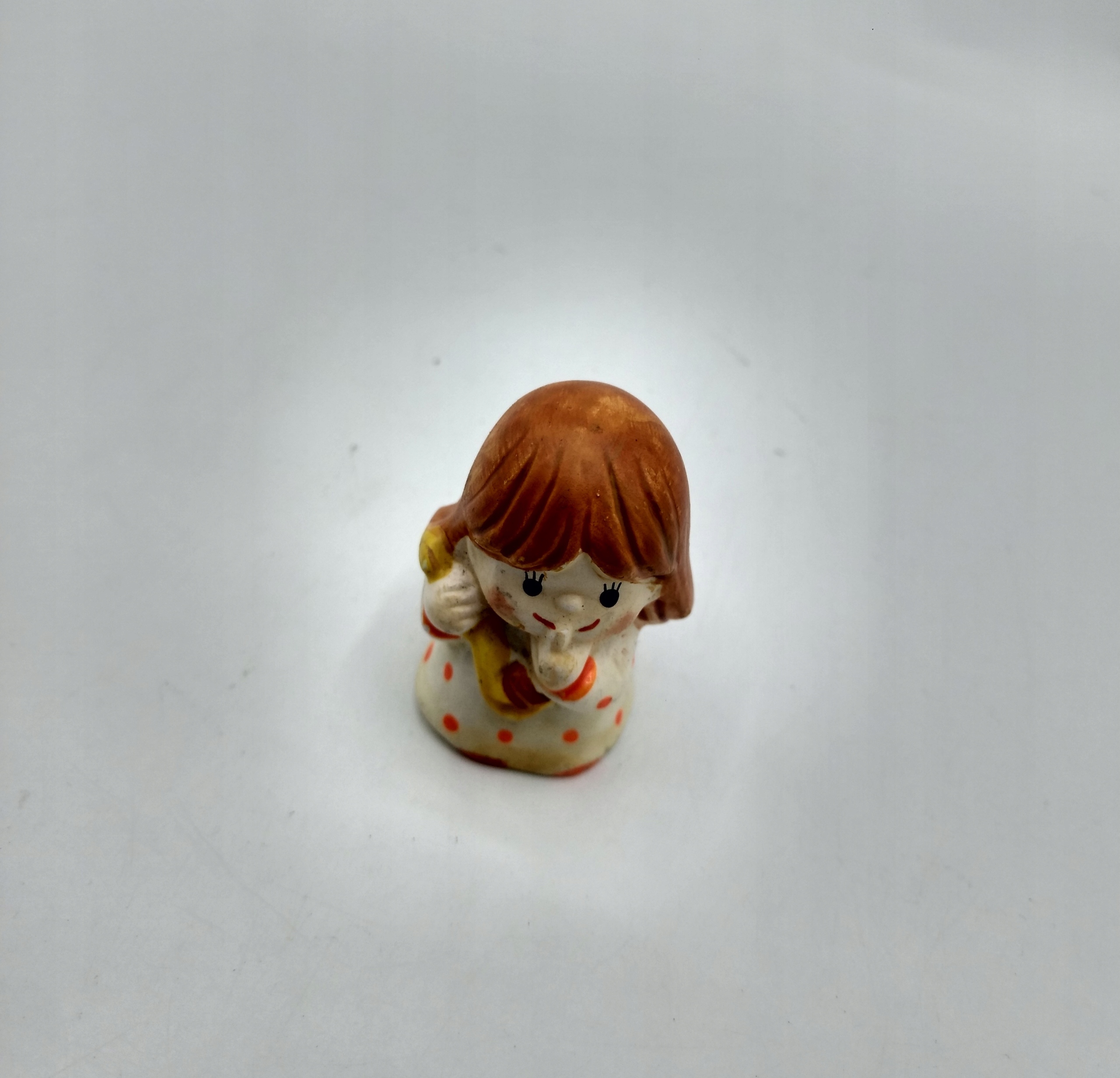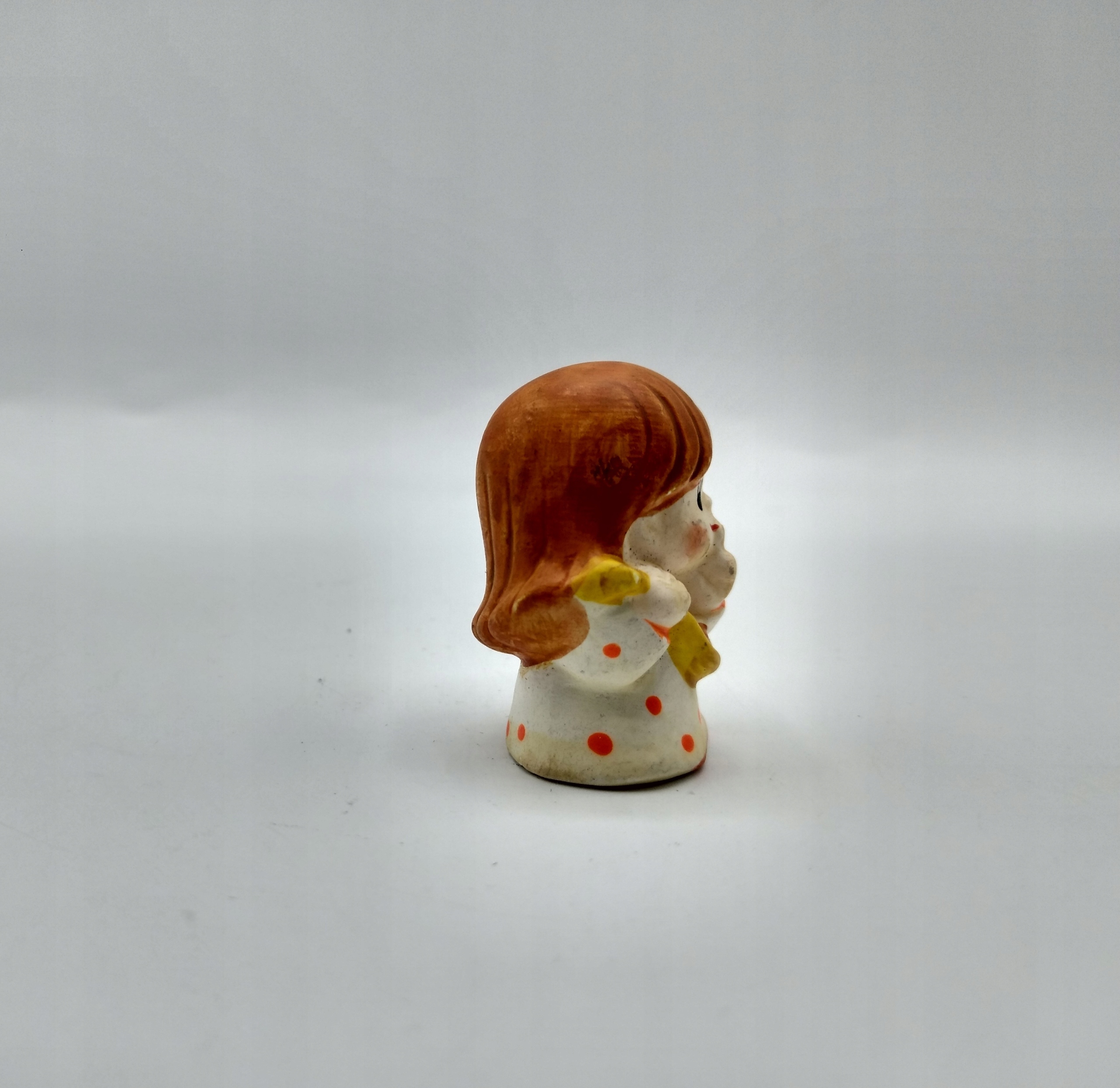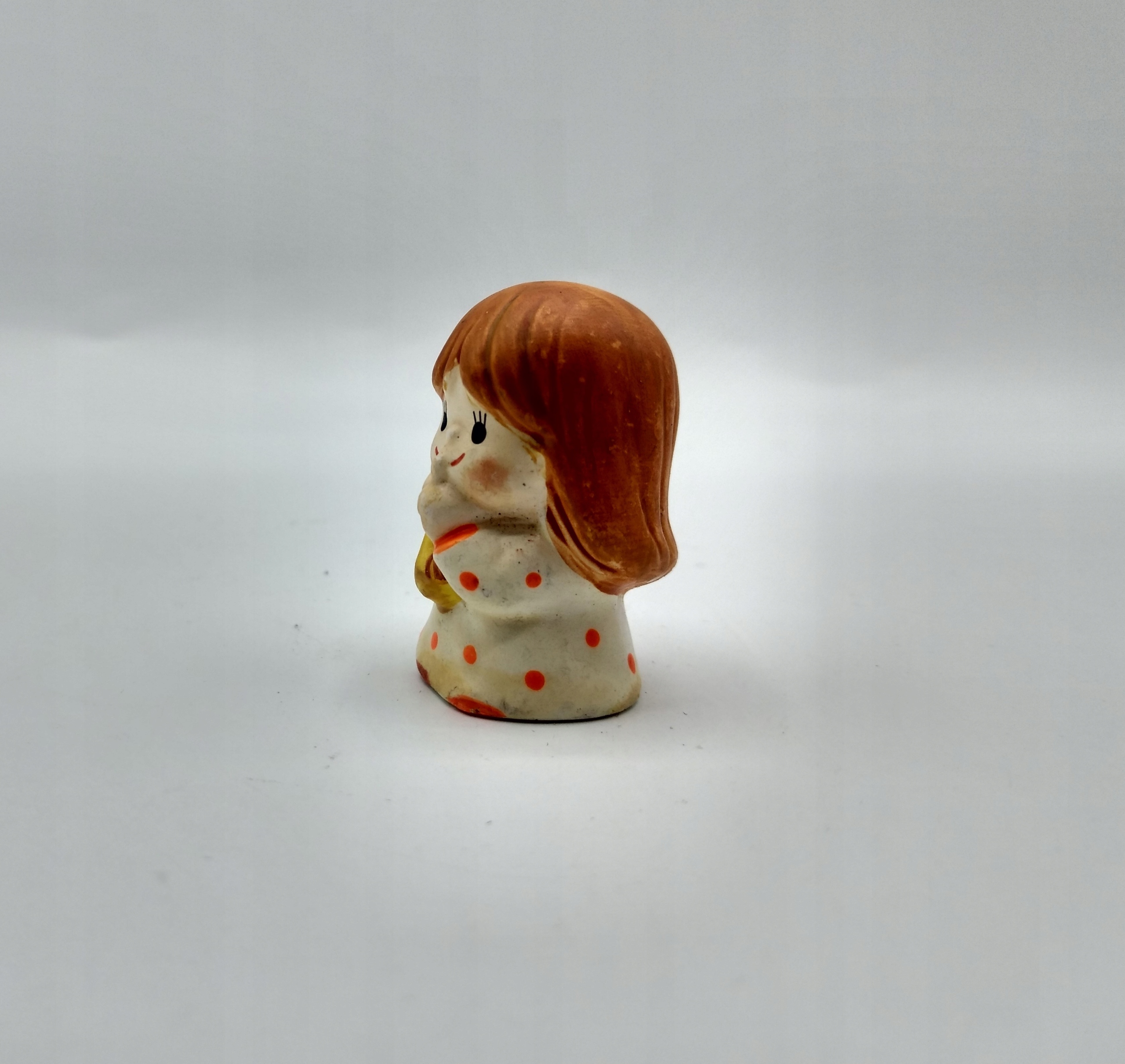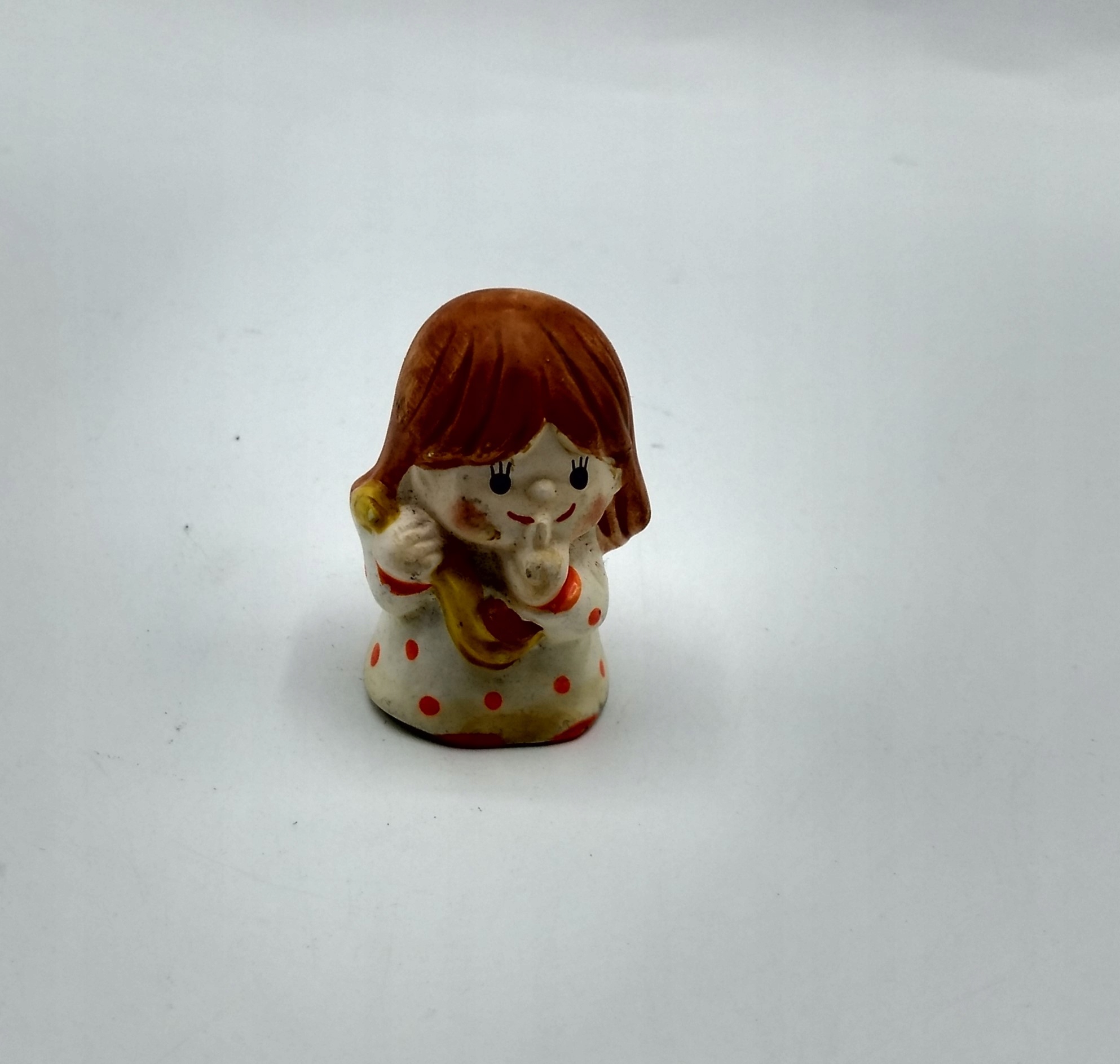 - рыжеволосая девочка в пижаме в горошек, держит в руке одеяло/памперс, показывает пальцем, чтобы было тихо, очень милая старая коллекционная статуэтка!