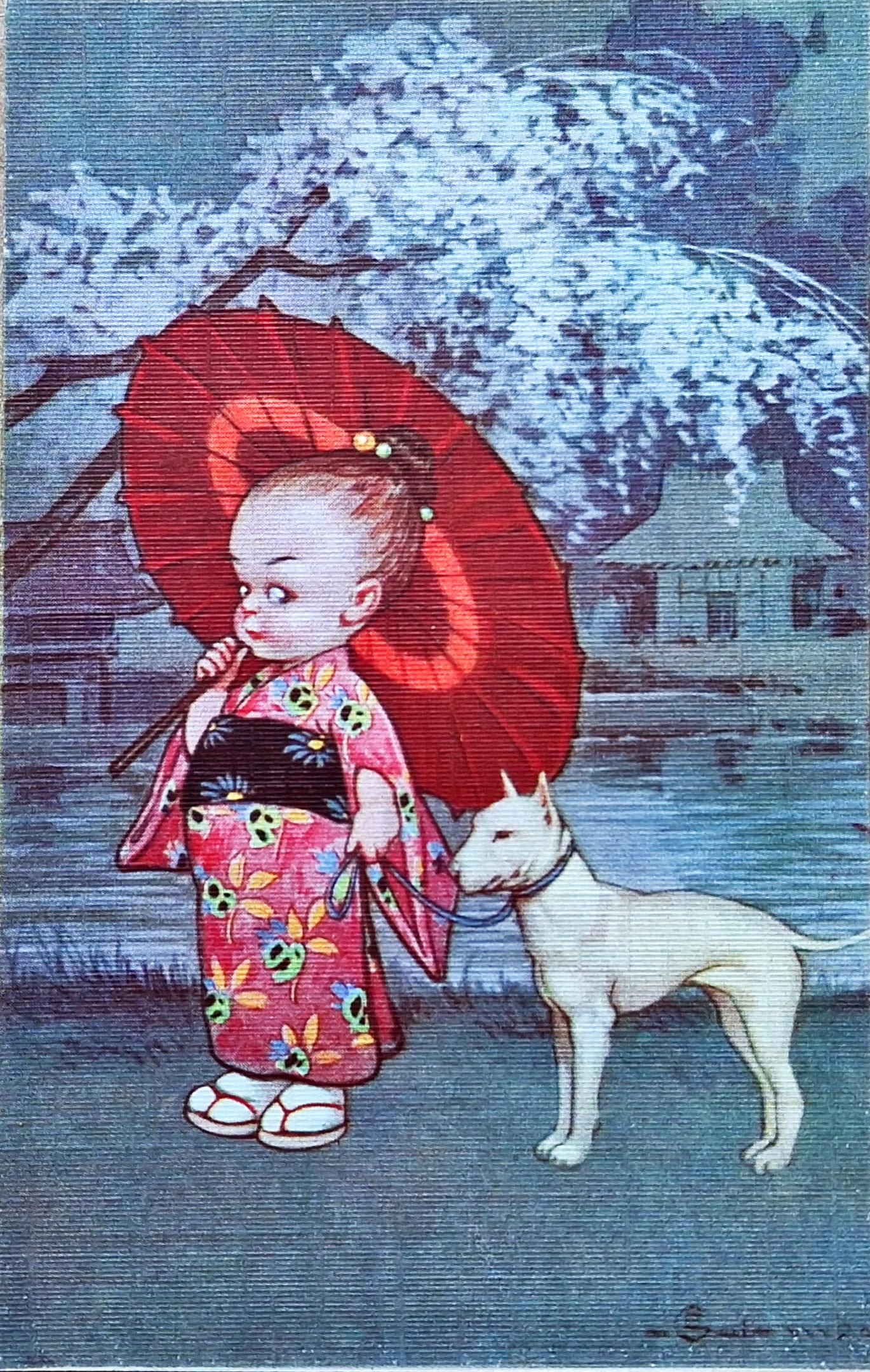 Девушка и собака- старая открытка